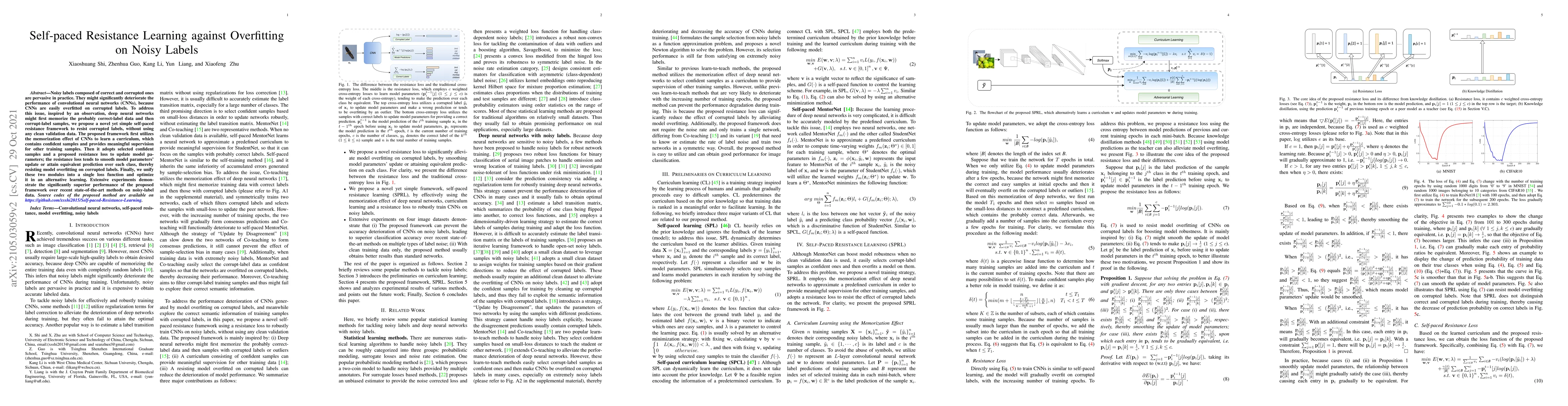 This paper proposes a self-paced resistance framework to mitigate overfitting on noisy labels in CNNs, utilizing confident samples to learn a curriculum and introducing a resistance loss to smooth parameter updates, achieving superior performance on noisy datasets compared to state-of-the-art methods. Source codes are available on GitHub.