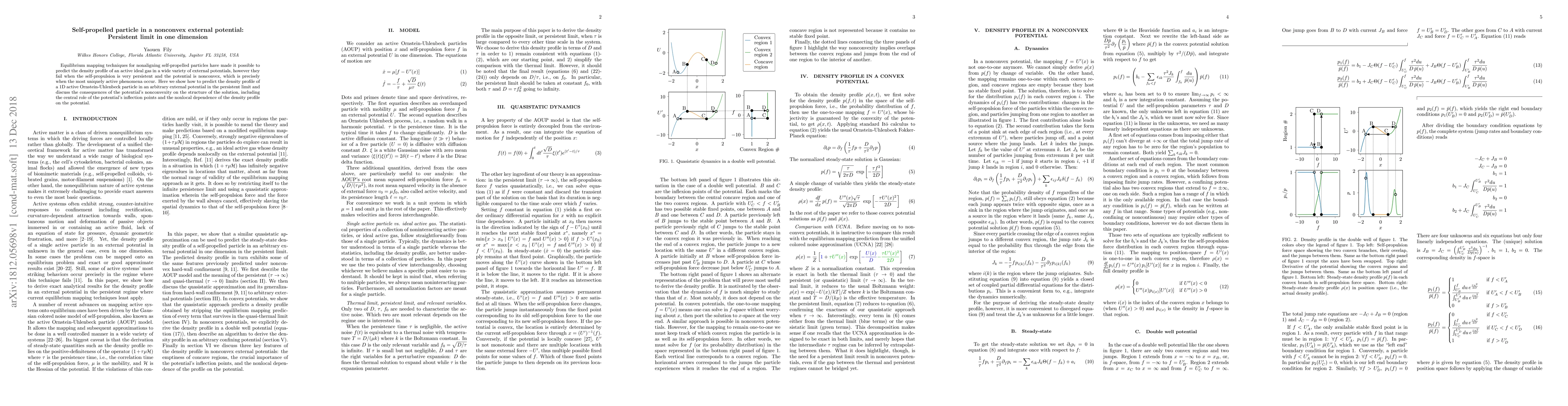 This paper develops a method to predict the density profile of a persistent self-propelled particle in a one-dimensional nonconvex external potential, addressing the limitations of existing equilibrium mapping techniques. It highlights the significance of potential inflection points and nonlocal density profile dependencies in the persistent limit.