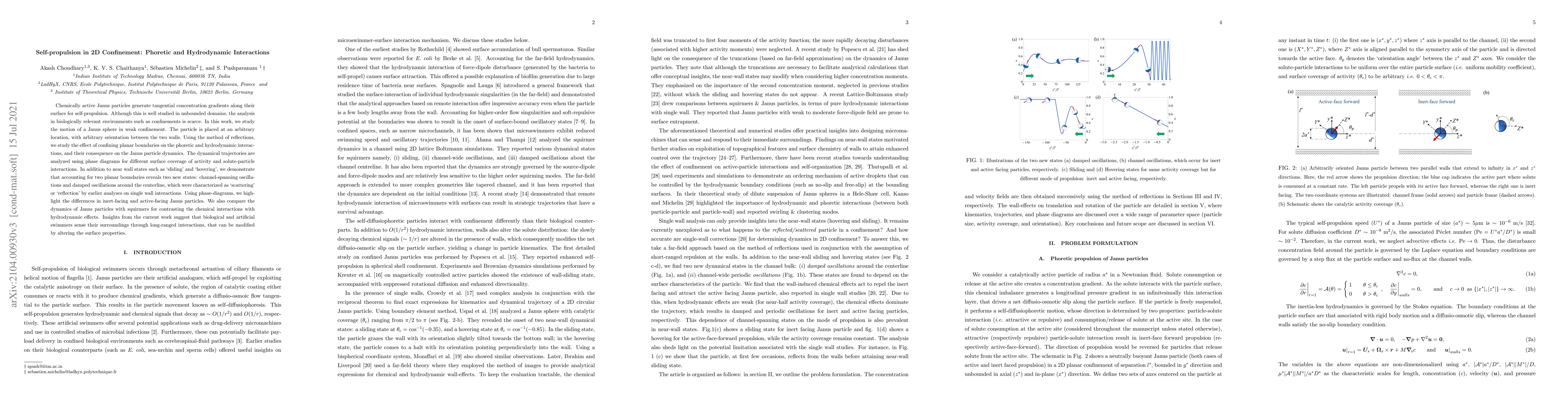 This paper investigates the self-propulsion dynamics of Janus particles in 2D confined environments, revealing new motion states like channel-spanning oscillations and damped oscillations around the centerline. It contrasts phoretic and hydrodynamic interactions, highlighting differences between inert-facing and active-facing Janus particles and comparing them with squirmers.