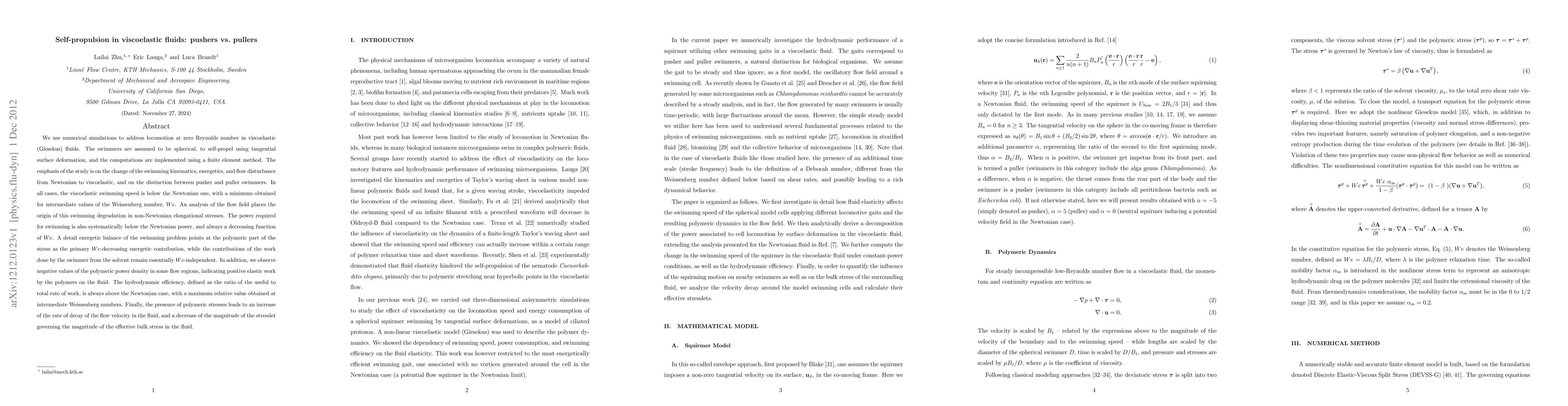 Swimmers in viscoelastic fluids move more slowly than in Newtonian fluids due to non-Newtonian elongational stresses, with maximum efficiency at intermediate Weissenberg numbers.