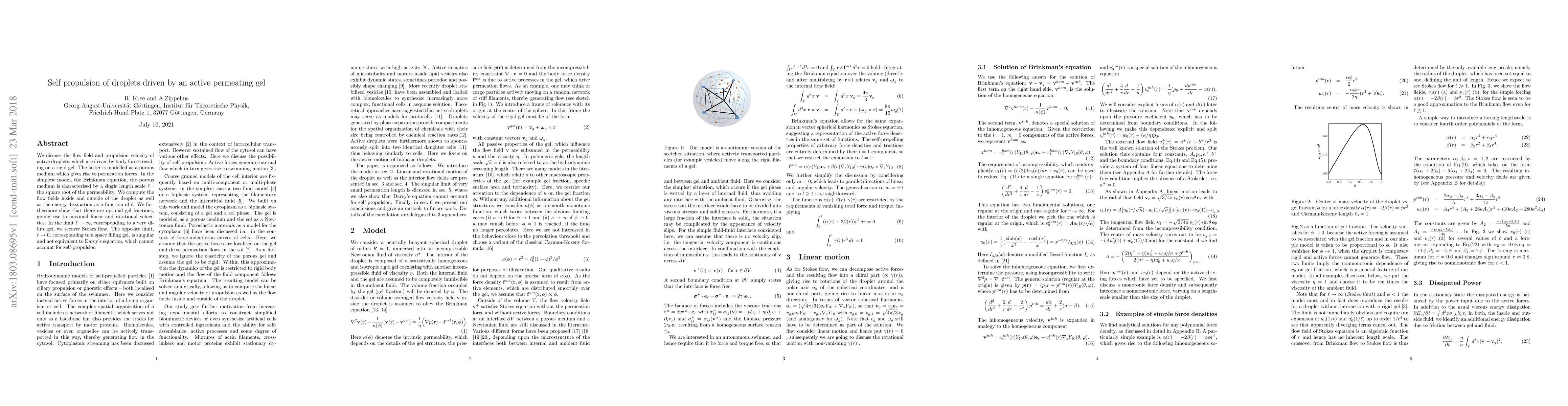 This paper investigates the self-propulsion of droplets driven by an active permeating gel, modeling the gel as a porous medium that generates permeation forces. It finds optimal gel fractions that maximize linear and rotational velocities, and shows that the Brinkman equation best describes the flow field and energy dissipation.