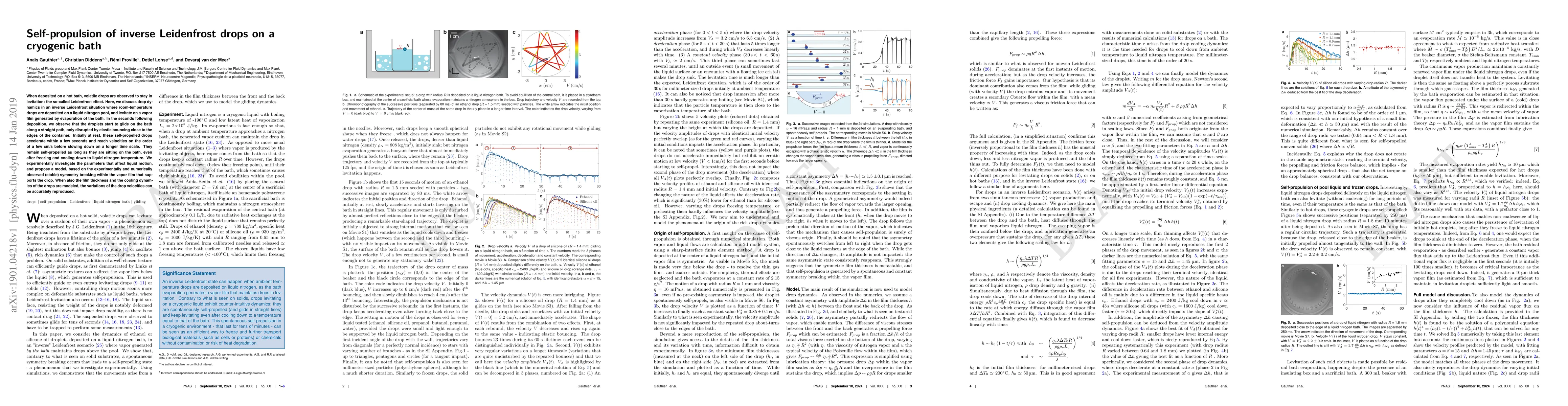 This research explores the self-propulsion of room-temperature drops on a liquid nitrogen bath, known as the inverse Leidenfrost effect, where drops levitate on a vapor film. Drops accelerate to velocities of a few cm/s before slowing down and glide along straight paths, driven by symmetry breaking in the vapor film, with cooling dynamics influencing their motion.