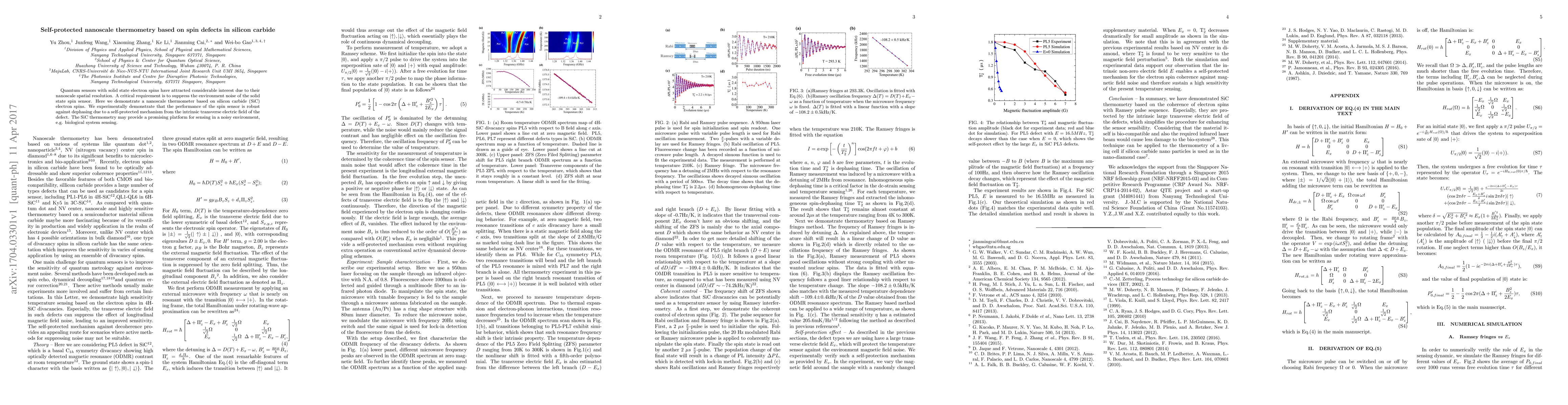 This paper presents a nanoscale thermometer utilizing silicon carbide electron spin defects, demonstrating robust performance against environmental noise through a self-protection mechanism. This self-protected thermometry could serve as a promising tool for sensing in noisy environments, such as biological systems.
