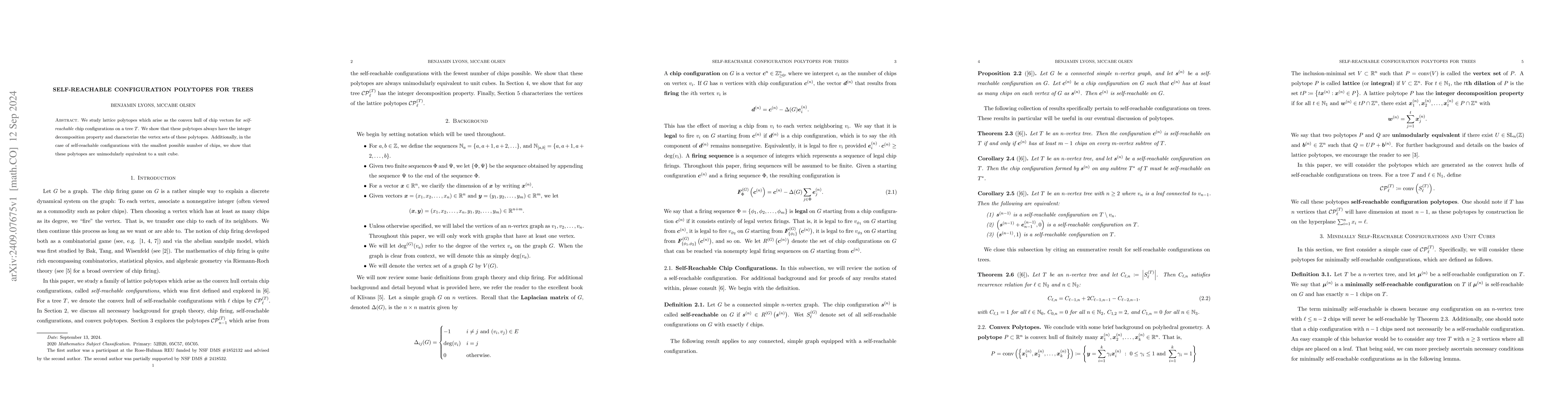 This paper investigates lattice polytopes formed by the convex hull of chip vectors from self-reachable configurations on tree structures. It demonstrates that these polytopes possess the integer decomposition property and identifies their vertex sets. Specifically, it finds that the polytopes corresponding to the minimal self-reachable chip configurations are unimodularly equivalent to a unit cube.
