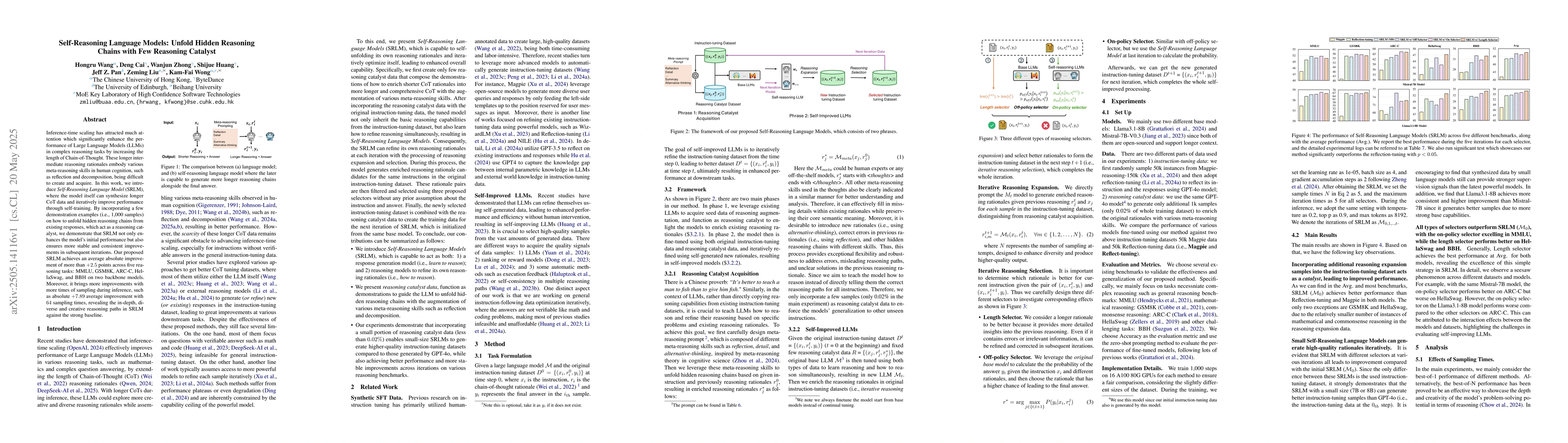 A new language model called Self-Reasoning Language Model (SRLM) can synthesize longer reasoning chains through self-training with a few demonstration examples, achieving significant improvements in complex reasoning tasks.