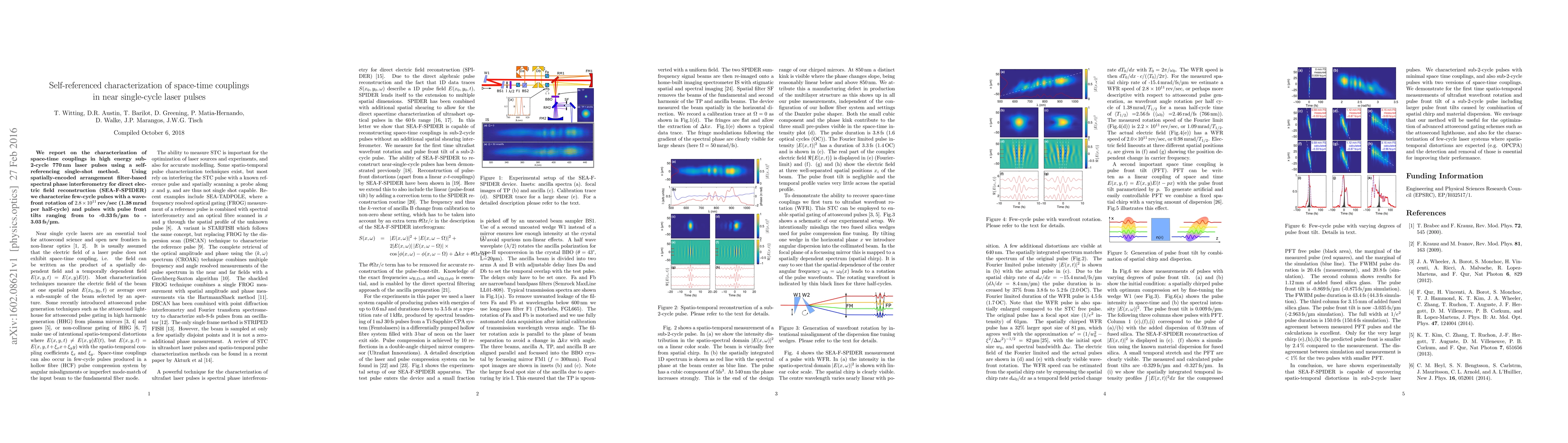 This paper characterizes space-time couplings in high energy sub-2-cycle laser pulses using a self-referencing method. It employs SEA-F-SPIDER to measure wavefront rotations and pulse front tilts, revealing significant temporal and spatial dynamics.