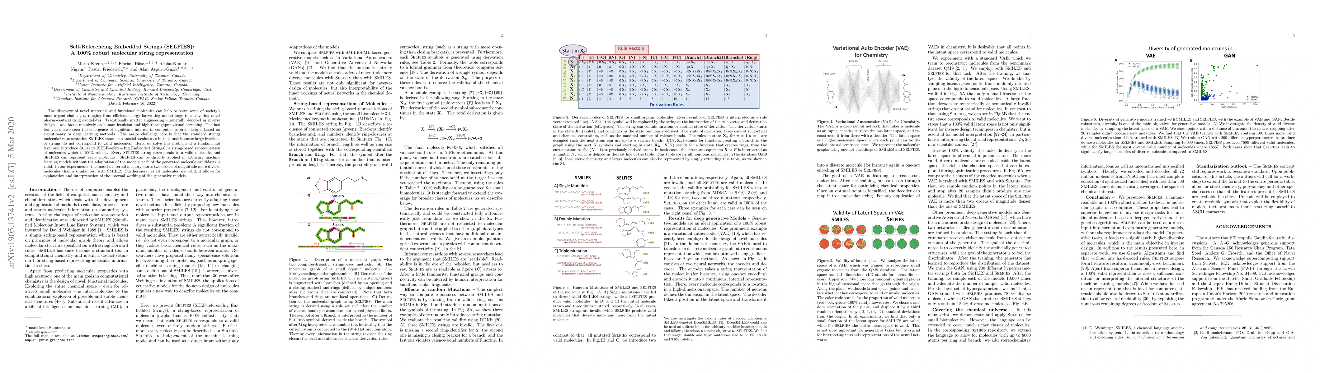 The paper introduces SELFIES, a robust molecular string representation that ensures every string corresponds to a valid molecule, addressing the limitations of SMILES. SELFIES enables diverse and valid molecule generation for machine learning models, enhancing interpretability and expanding the scope of generative models in material and drug discovery.