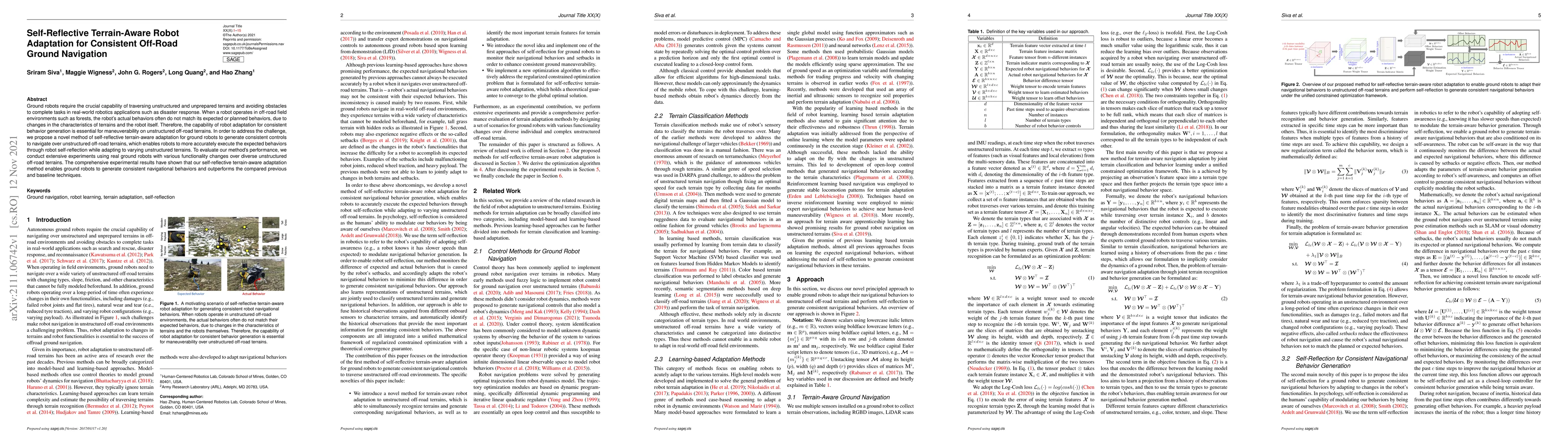This paper proposes a self-reflective terrain-aware adaptation method for ground robots to navigate unstructured off-road terrains, enabling consistent behavior despite changes in terrain and robot functionality. The method's effectiveness is demonstrated through experiments with real robots, showing superior performance compared to previous techniques.