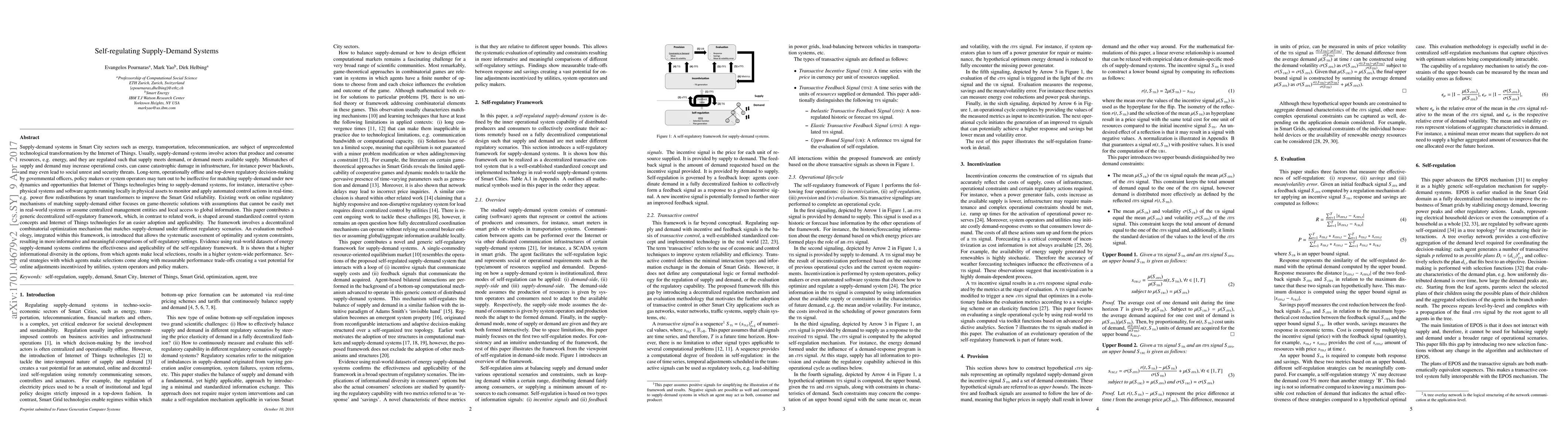 Supply-demand systems in Smart City sectors such as energy, transportation, telecommunication, are subject of unprecedented technological transformations by the Internet of Things. Usually, supply-demand systems involve actors that produce and consume resources, e.g. energy, and they are regulated such that supply meets demand, or demand meets available supply. Mismatches of supply and demand may increase operational costs, can cause catastrophic damage in infrastructure, for instance power blackouts, and may even lead to social unrest and security threats. Long-term, operationally offline and top-down regulatory decision-making by governmental officers, policy makers or system operators may turn out to be ineffective for matching supply-demand under new dynamics and opportunities that Internet of Things technologies bring to supply-demand systems, for instance, interactive cyber-physical systems and software agents running locally in physical assets to monitor and apply automated control actions in real-time. e.g. power flow redistributions by smart transformers to improve the Smart Grid reliability. Existing work on online regulatory mechanisms of matching supply-demand either focuses on game-theoretic solutions with assumptions that cannot be easily met in real-world systems or assume centralized management entities and local access to global information. This paper contributes a generic decentralized self-regulatory framework, which, in contrast to related work, is shaped around standardized control system concepts and Internet of Things technologies for an easier adoption and applicability. The framework involves a decentralized combinatorial optimization mechanism that matches supply-demand under different regulatory scenarios.