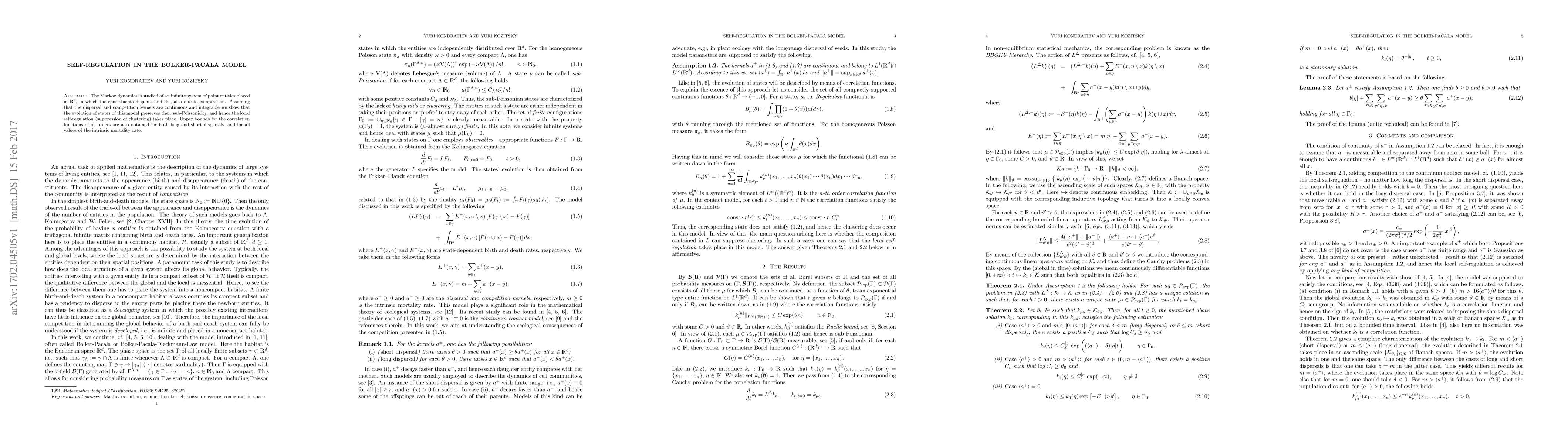 The Markov dynamics is studied of an infinite system of point entities placed in $\mathds{R}^d$, in which the constituents disperse and die, also due to competition. Assuming that the dispersal and competition kernels are continuous and integrable we show that the evolution of states of this model preserves their sub-Poissonicity, and hence the local self-regulation (suppression of clustering) takes place. Upper bounds for the correlation functions of all orders are also obtained for both long and short dispersals, and for all values of the intrinsic mortality rate.