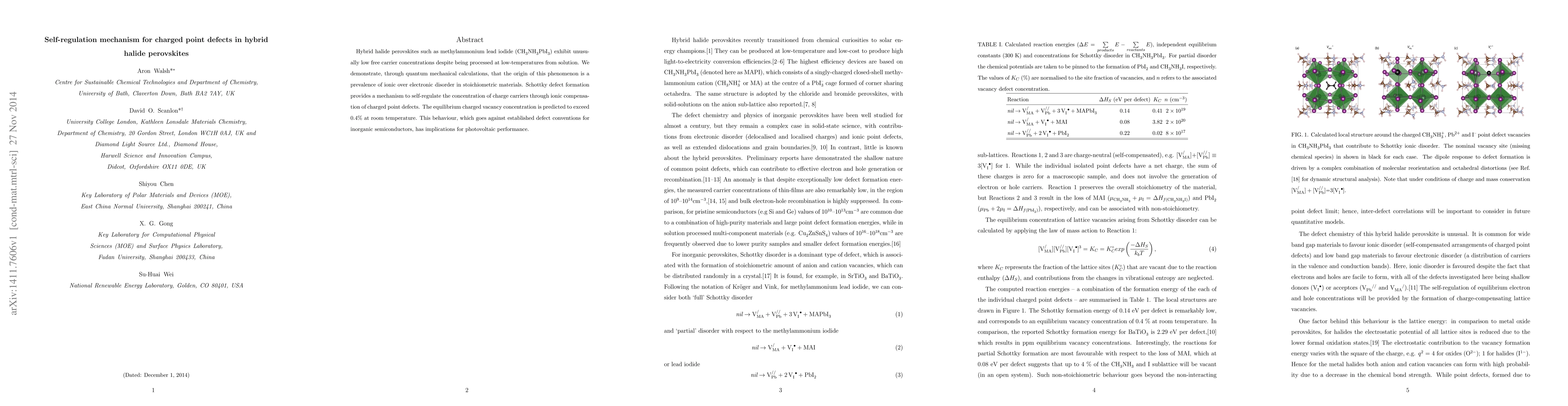 This paper demonstrates that hybrid halide perovskites maintain low free carrier concentrations due to ionic disorder and Schottky defect formation, which self-regulates charge carrier concentration via ionic compensation. This unconventional behavior has significant implications for the photovoltaic performance of these materials.