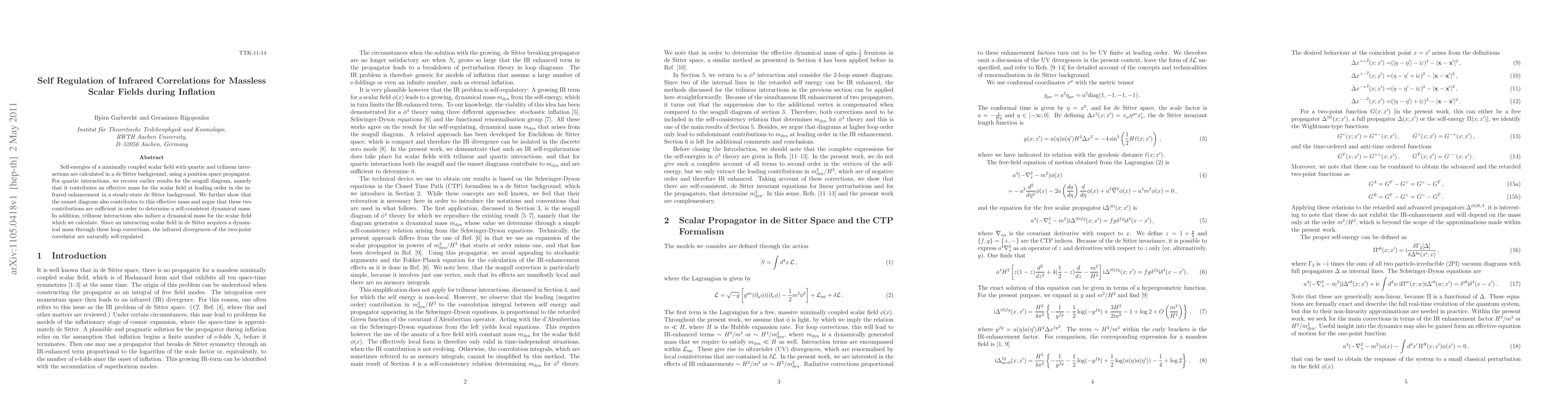 Self-energies of a minimally coupled scalar field with quartic and trilinear interactions are calculated in a de Sitter background, using a position space propagator. For quartic interactions, we recover earlier results for the seagull diagram, namely that it contributes an effective mass for the scalar field at leading order in the infrared enhancement in a steady-state de Sitter background. We further show that the sunset diagram also contributes to this effective mass and argue that these two contributions are sufficient in order to determine a self-consistent dynamical mass. In addition, trilinear interactions also induce a dynamical mass for the scalar field which we calculate. Since an interacting scalar field in de Sitter acquires a dynamical mass through these loop corrections, the infrared divergences of the two-point correlator are naturally self-regulated.