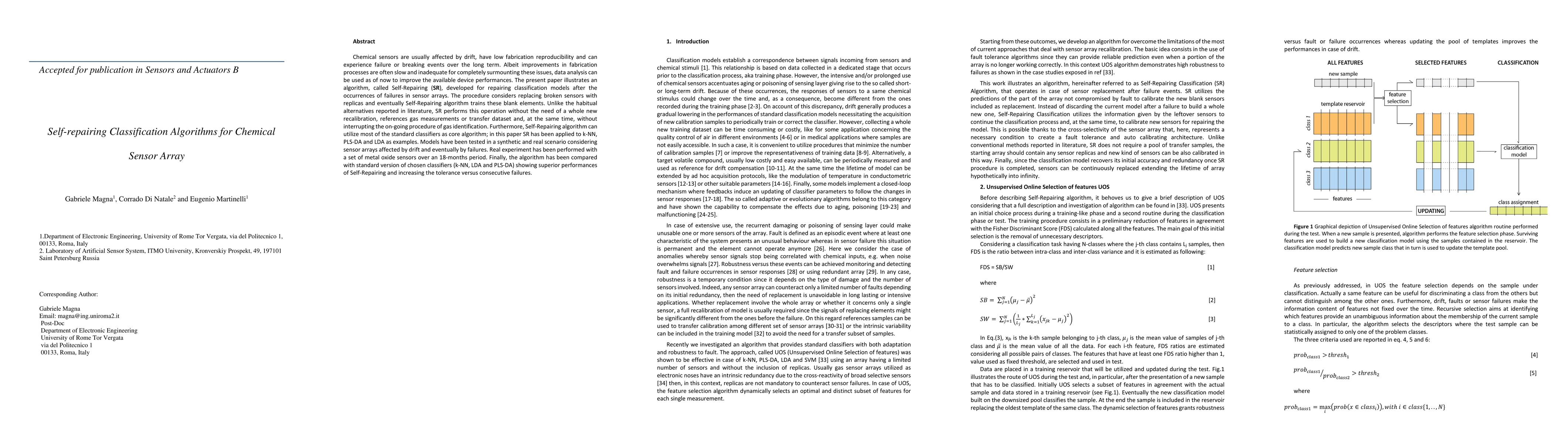 The Self-Repairing algorithm, which can be integrated with standard classifiers to maintain and improve classification performance in the face of sensor failures and drift in chemical sensor arrays.