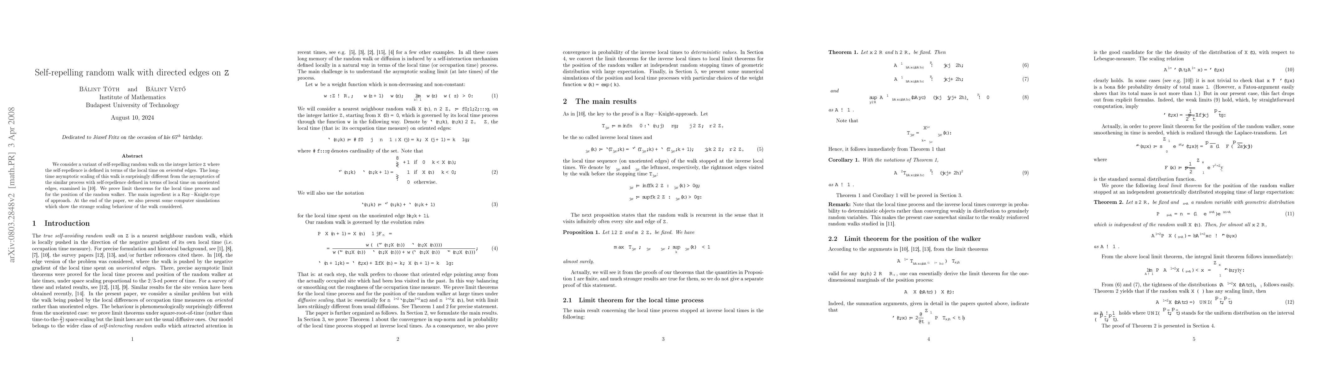 This paper studies a self-repelling random walk on the integer lattice Z with self-repellence based on local time on directed edges, revealing different long-time asymptotic behavior compared to undirected edge variants. The authors prove limit theorems using a Ray-Knight approach and provide computer simulations illustrating the unique scaling behavior.