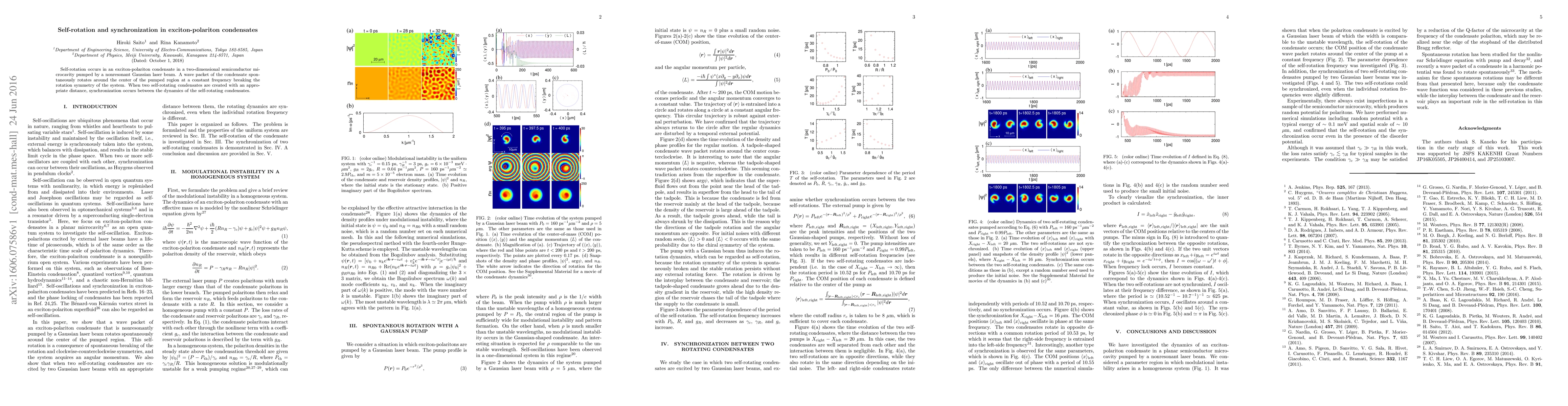 The paper presents a detailed analysis of self-rotation and synchronization in exciton-polariton condensates, highlighting the interplay between condensate and reservoir dynamics.