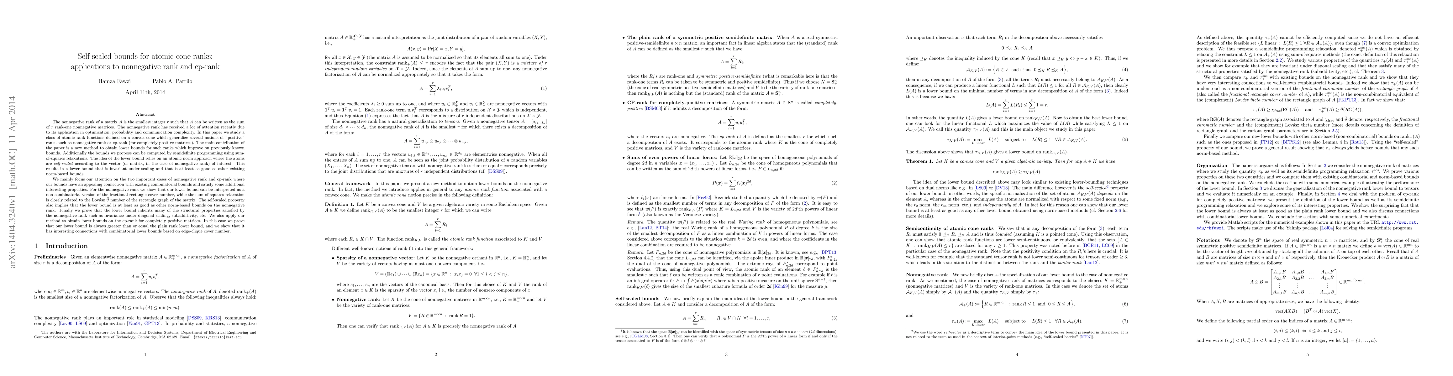 This paper introduces new self-scaled bounds for atomic cone ranks, particularly focusing on nonnegative rank and cp-rank, improving upon existing bounds through a semidefinite programming approach. The proposed bounds are invariant under scaling and exhibit properties similar to the nonnegative rank, including invariance under diagonal scaling and subadditivity.