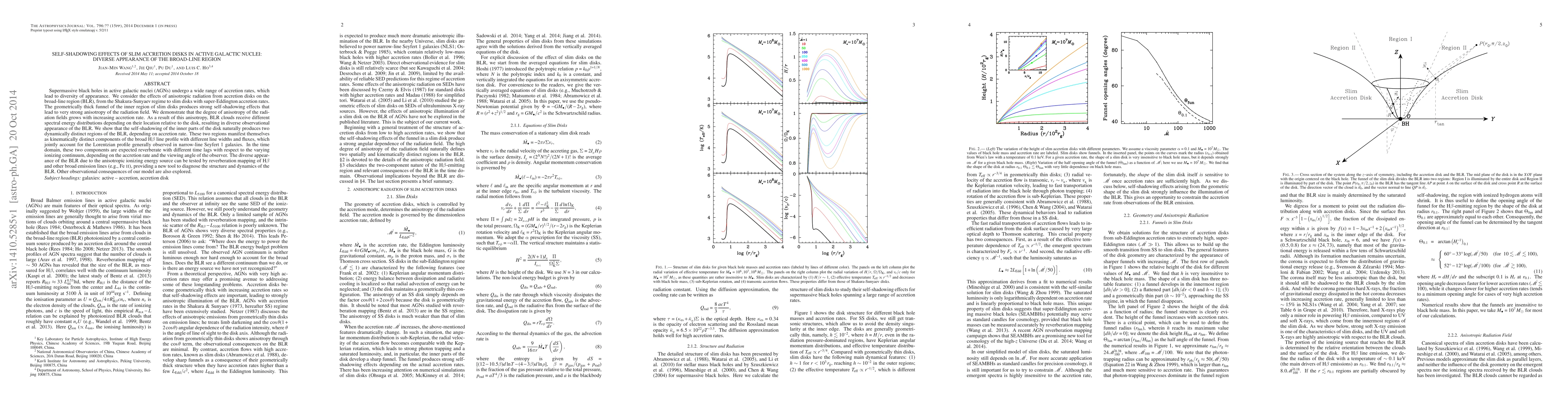 This paper investigates the self-shadowing effects of slim accretion disks in active galactic nuclei, showing how anisotropic radiation from these disks leads to diverse appearances of the broad-line region (BLR). The study reveals that the degree of radiation anisotropy increases with accretion rate, resulting in distinct kinematic components of the broad H$\beta$ line profile and different time lags in response to the ionizing continuum.