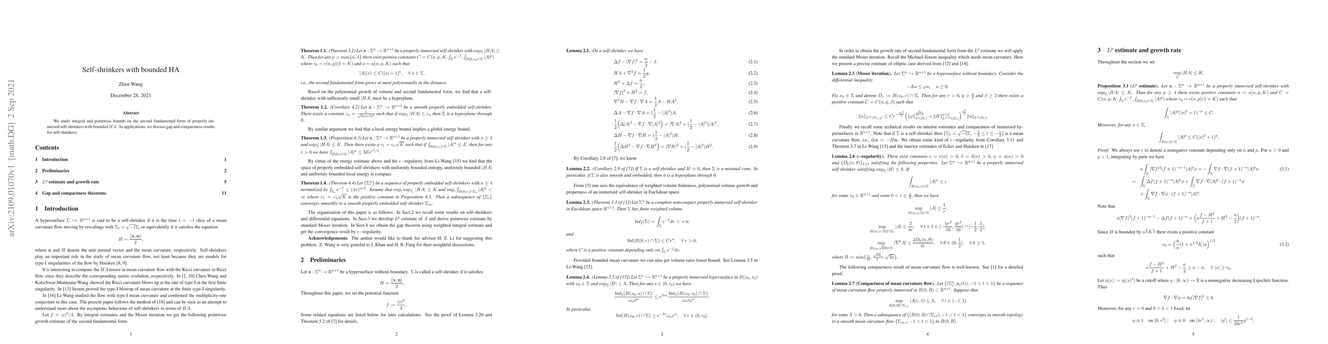 This paper investigates integral and pointwise bounds on the second fundamental form of properly immersed self-shrinkers with bounded mean curvature (HA). It also explores the implications of these bounds in achieving gap and compactness results for self-shrinkers.