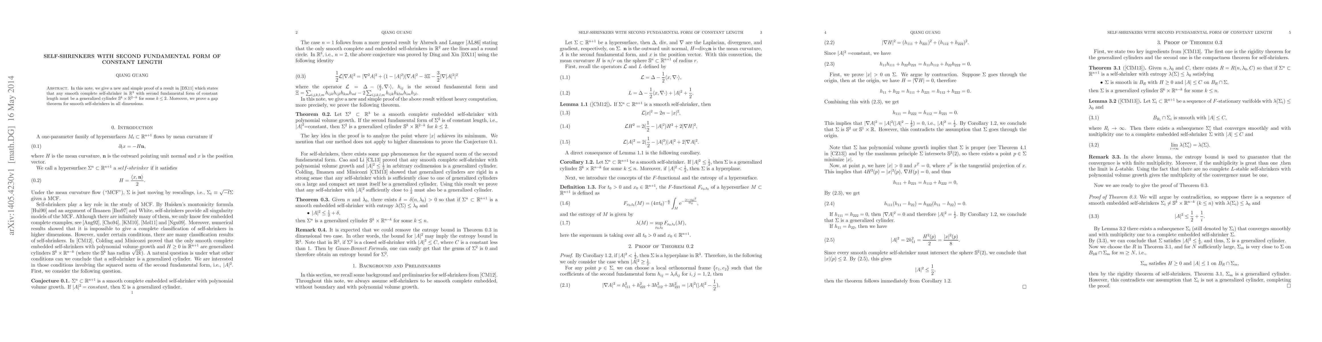 This work is novel because it provides a new understanding of self-shrinkers with constant length second fundamental form, which has implications for the study of geometric flows and their singularities.