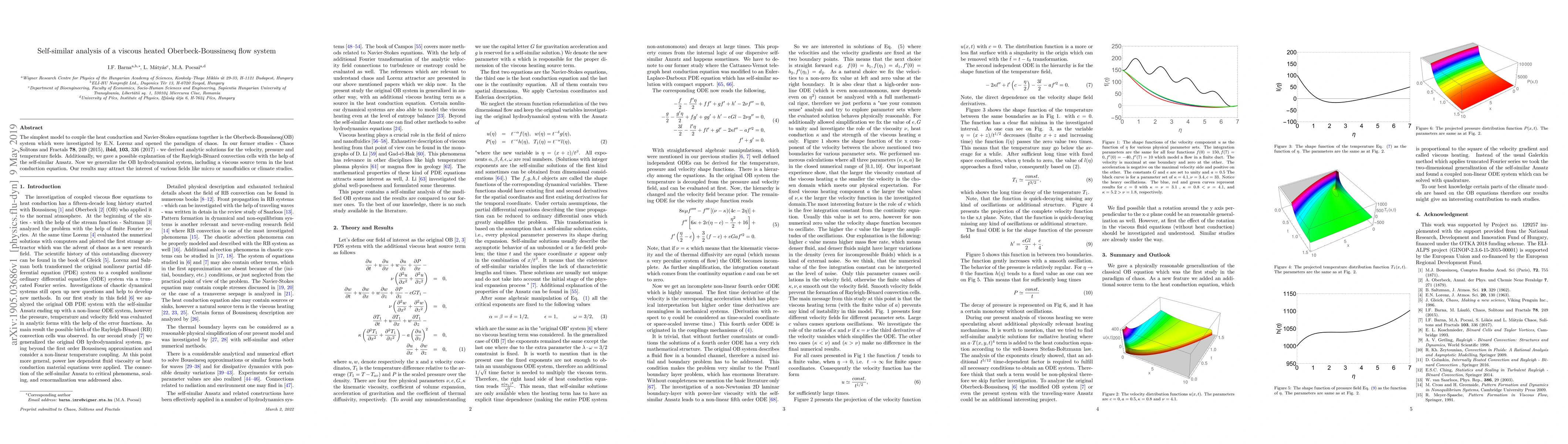 The simplest model to couple the heat conduction and Navier-Stokes equations together is the Oberbeck-Boussinesq(OB)system which were investigated by E.N. Lorenz and opened the paradigm of chaos. In our former studies - Chaos, Solitons and Fractals 78, 249 (2015), ibid, 103, 336 (2017) - we derived analytic solutions for the velocity, pressure and temperature fields. Additionally, we gave a possible explanation of the Rayleigh-B\`enard convection cells with the help of the self-similar Ansatz. Now we generalize the OB hydrodynamical system, including a viscous source term in the heat conduction equation. Our results may attract the interest of various fields like micro or nanofluidics or climate studies.