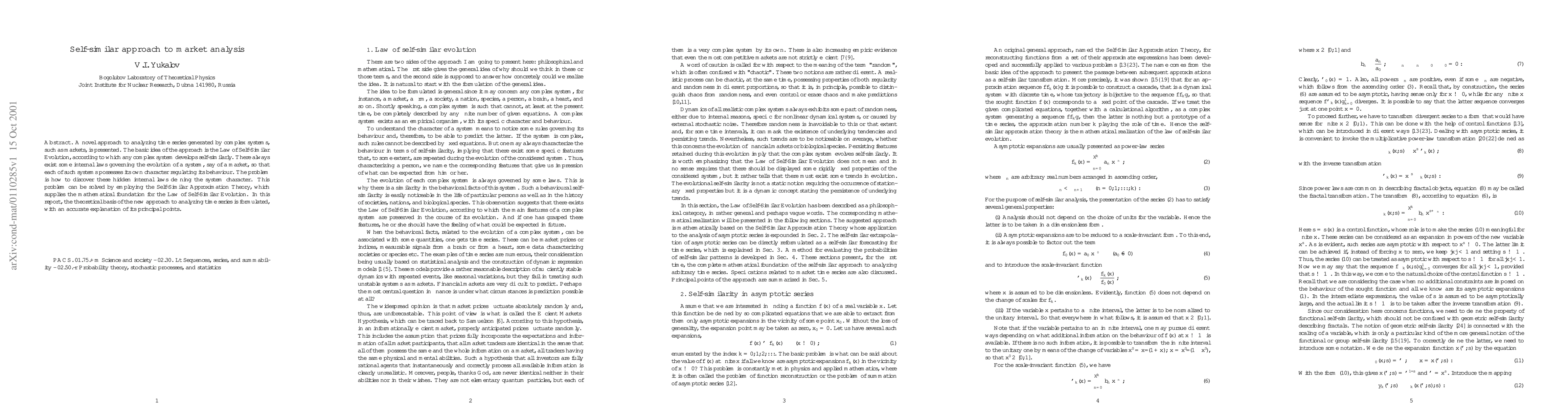 A novel approach to analyzing time series generated by complex systems, such as markets, is presented. The basic idea of the approach is the {\it Law of Self-Similar Evolution}, according to which any complex system develops self-similarly. There always exist some internal laws governing the evolution of a system, say of a market, so that each of such systems possesses its own character regulating its behaviour. The problem is how to discover these hidden internal laws defining the system character. This problem can be solved by employing the {\it Self-Similar Approximation Theory}, which supplies the mathematical foundation for the Law of Self-Similar Evolution. In this report, the theoretical basis of the new approach to analyzing time series is formulated, with an accurate explanation of its principal points.