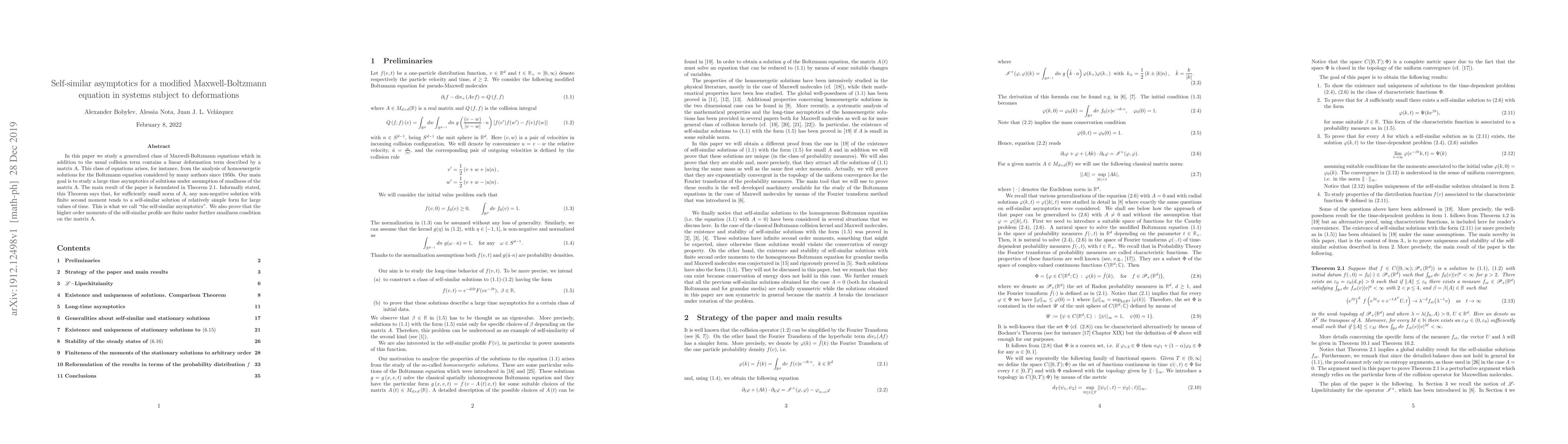 This paper investigates a modified Maxwell-Boltzmann equation with a linear deformation term, showing that for sufficiently small deformation, solutions tend to a self-similar form as time increases, with finite higher order moments under additional smallness conditions.
