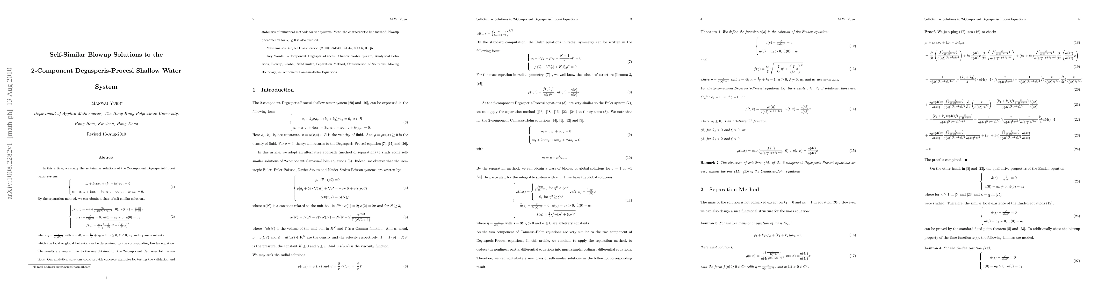 In this article, we study the self-similar solutions of the 2-component Degasperis-Procesi water system:% [c]{c}% \rho_{t}+k_{2}u\rho_{x}+(k_{1}+k_{2})\rho u_{x}=0 u_{t}-u_{xxt}+4uu_{x}-3u_{x}u_{xx}-uu_{xxx}+k_{3}\rho\rho_{x}=0. By the separation method, we can obtain a class of self-similar solutions,% [c]{c}% \rho(t,x)=\max(\frac{f(\eta)}{a(4t)^{(k_{1}+k_{2})/4}},\text{}0),\text{}u(t,x)=\frac{\overset{\cdot}{a}(4t)}{a(4t)}x \overset{\cdot\cdot}{a}(s)-\frac{\xi}{4a(s)^{\kappa}}=0,\text{}a(0)=a_{0}% \neq0,\text{}\overset{\cdot}{a}(0)=a_{1} f(\eta)=\frac{k_{3}}{\xi}\sqrt{-\frac{\xi}{k_{3}}\eta^{2}+(\frac{\xi}{k_{3}}\alpha) ^{2}}% where $\eta=\frac{x}{a(s)^{1/4}}$ with $s=4t;$ $\kappa=\frac{k_{1}}{2}% +k_{2}-1,$ $\alpha\geq0,$ $\xi<0$, $a_{0}$ and $a_{1}$ are constants. which the local or global behavior can be determined by the corresponding Emden equation. The results are very similar to the one obtained for the 2-component Camassa-Holm equations. Our analytical solutions could provide concrete examples for testing the validation and stabilities of numerical methods for the systems. With the characteristic line method, blowup phenomenon for $k_{3}\geq0$ is also studied.