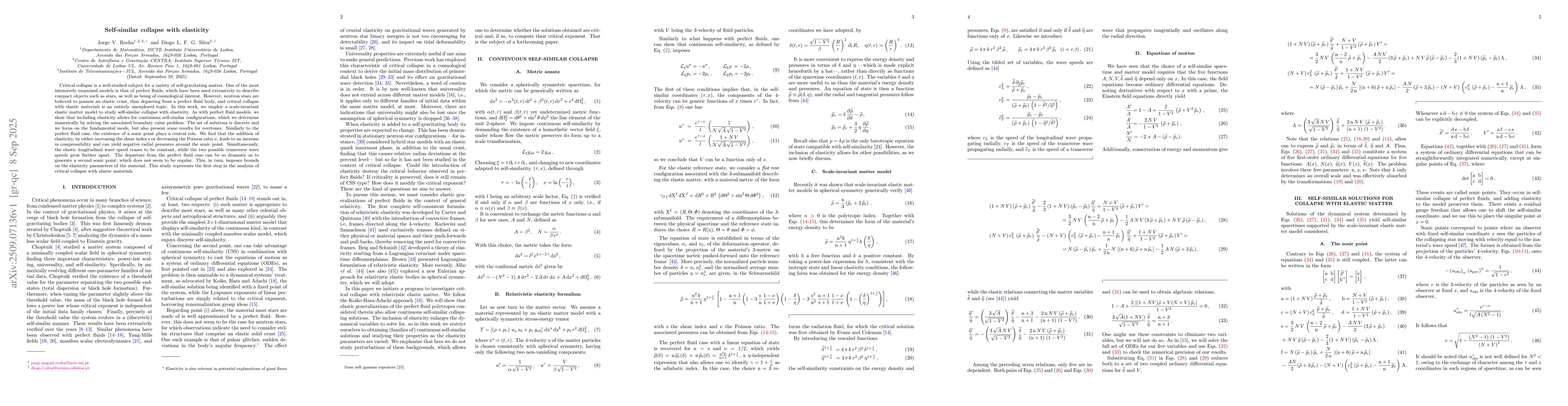 Critical collapse is a well-studied subject for a variety of self-gravitating matter. One of the most intensively examined models is that of perfect fluids, which have been used extensively to describe compact objects such as stars, as well as being of cosmological interest. However, neutron stars are believed to possess an elastic crust, thus departing from a perfect fluid body, and critical collapse with elastic materials is an entirely unexplored topic. In this work, we employ a scale-invariant elastic matter model to study self-similar collapse with elasticity. As with perfect fluid models, we show that including elasticity allows for continuous self-similar configurations, which we determine numerically by solving the associated boundary value problem. The set of solutions is discrete and we focus on the fundamental mode, but also present some results for overtones. Similarly to the perfect fluid case, the existence of a sonic point plays a central role. We find that the addition of elasticity, by either increasing the shear index $\mathrm{s}$ or decreasing the Poisson ratio $\nu$, leads to an increase in compressibility and can yield negative radial pressures around the sonic point. Simultaneously, the elastic longitudinal wave speed ceases to be constant, while the two possible transverse wave speeds grow further apart. The departure from the perfect fluid case can be so dramatic as to generate a second sonic point, which does not seem to be regular. This, in turn, imposes bounds on the elasticity parameters of the material. This study represents the first step in the analysis of critical collapse with elastic materials.