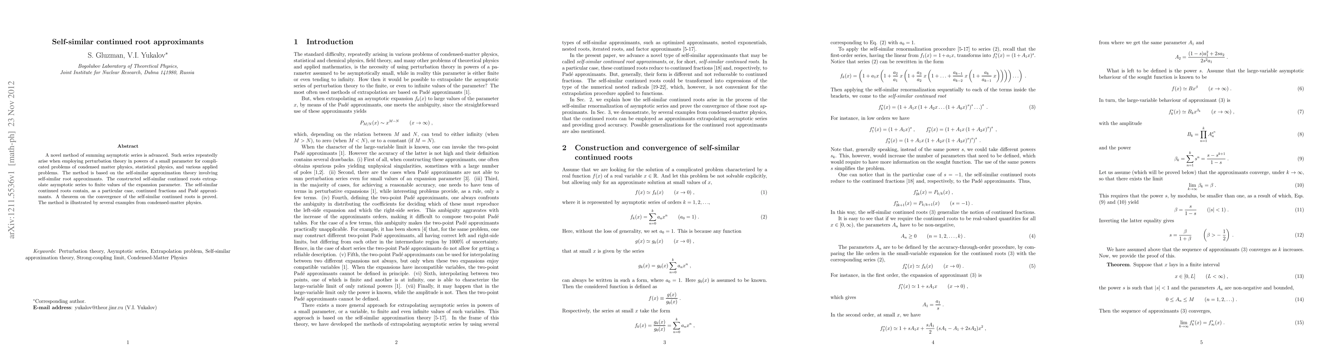 This paper introduces a new method for summing asymptotic series using self-similar continued root approximants, which is particularly useful in perturbation theory for condensed matter and statistical physics. The method extrapolates series to finite values and includes continued fractions and Padé approximants as special cases, with a proven convergence theorem.