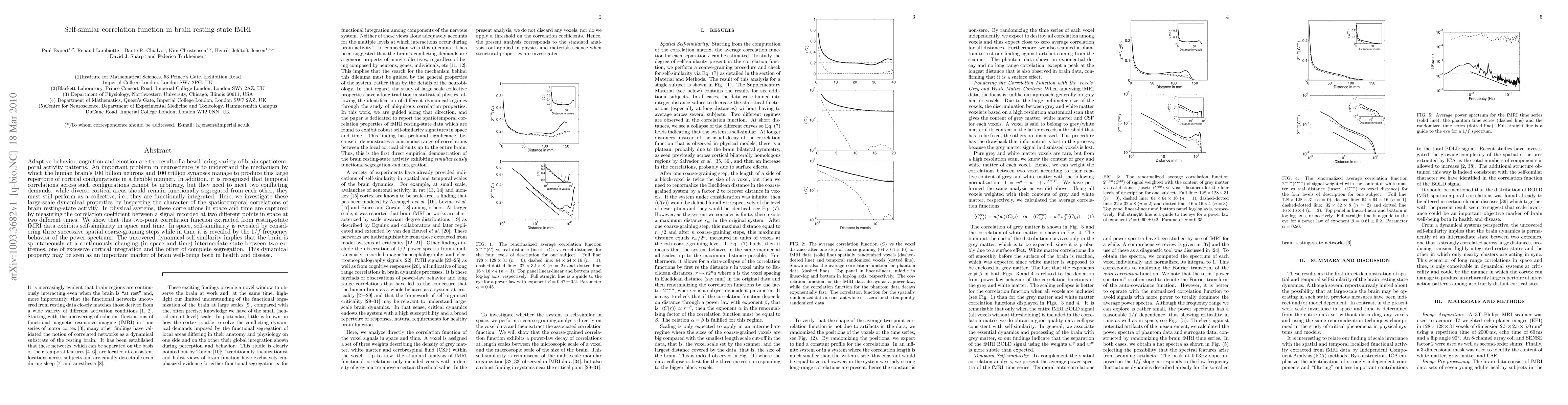 This paper investigates the spatiotemporal correlations in brain resting-state fMRI data, revealing that the two-point correlation function exhibits self-similarity in space and time, suggesting the brain operates between excessive integration and complete segregation. This self-similarity may serve as a crucial indicator of brain health.
