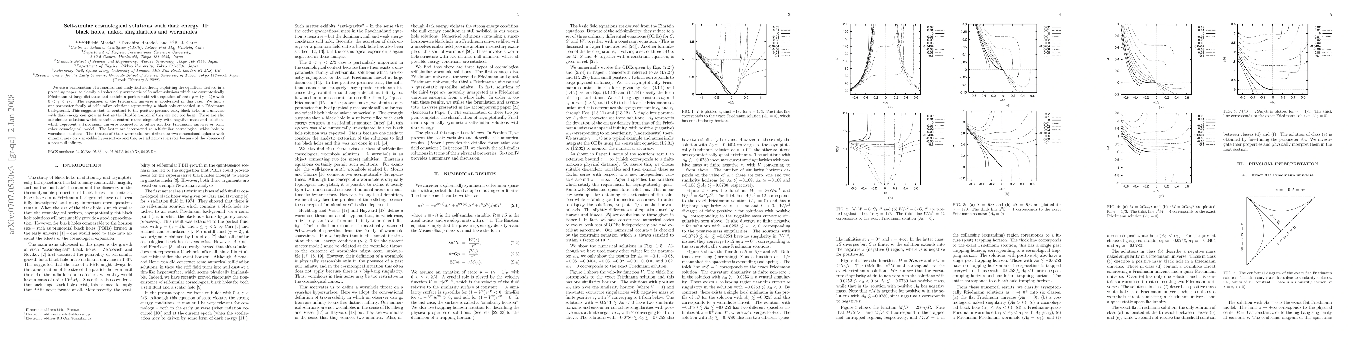 This paper classifies spherically symmetric self-similar cosmological solutions with dark energy, finding black holes that can grow rapidly in an accelerated universe. It also identifies naked singularities and non-traversable wormhole solutions connected to Friedmann universes.