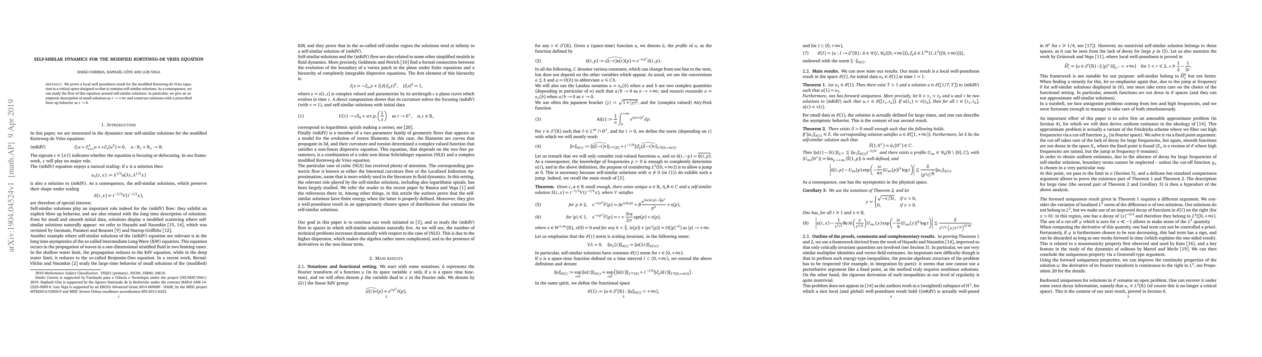 We prove a local well posedness result for the modified Korteweg-de Vries equation in a critical space designed so that is contains self-similar solutions. As a consequence, we can study the flow of this equation around self-similar solutions: in particular, we give an as-ymptotic description of small solutions as t $\rightarrow$ +$\infty$ and construct solutions with a prescribed blow up behavior as t $\rightarrow$ 0.