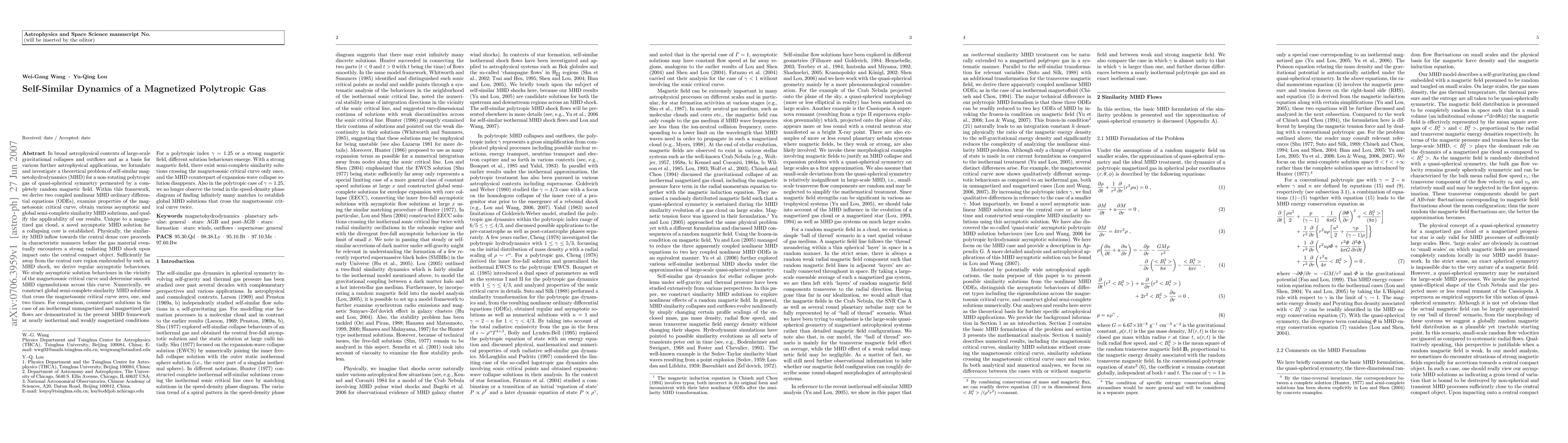 Researchers study self-similar dynamics of a magnetized polytropic gas, finding novel asymptotic solutions that describe collapse and shock formation in the core of a collapsing star, with varying solution behaviors depending on polytropic index and magnetic field strength.
