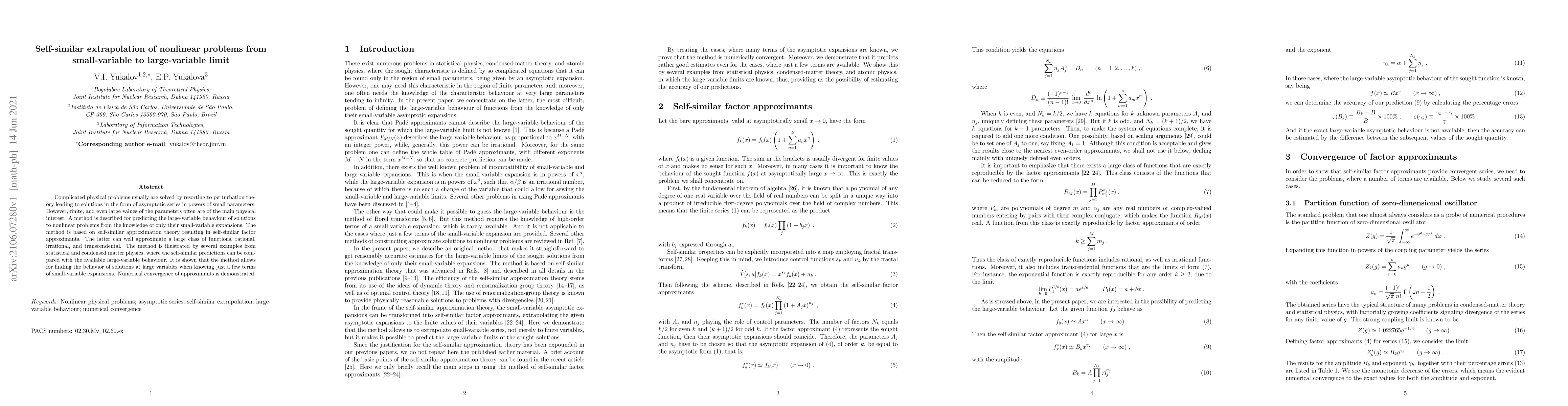 This paper introduces a method using self-similar approximation theory to predict the large-variable behavior of solutions to nonlinear problems, based on small-variable expansions. The approach, illustrated with examples from statistical and condensed matter physics, demonstrates accurate approximation of diverse functions with just a few small-variable expansion terms.