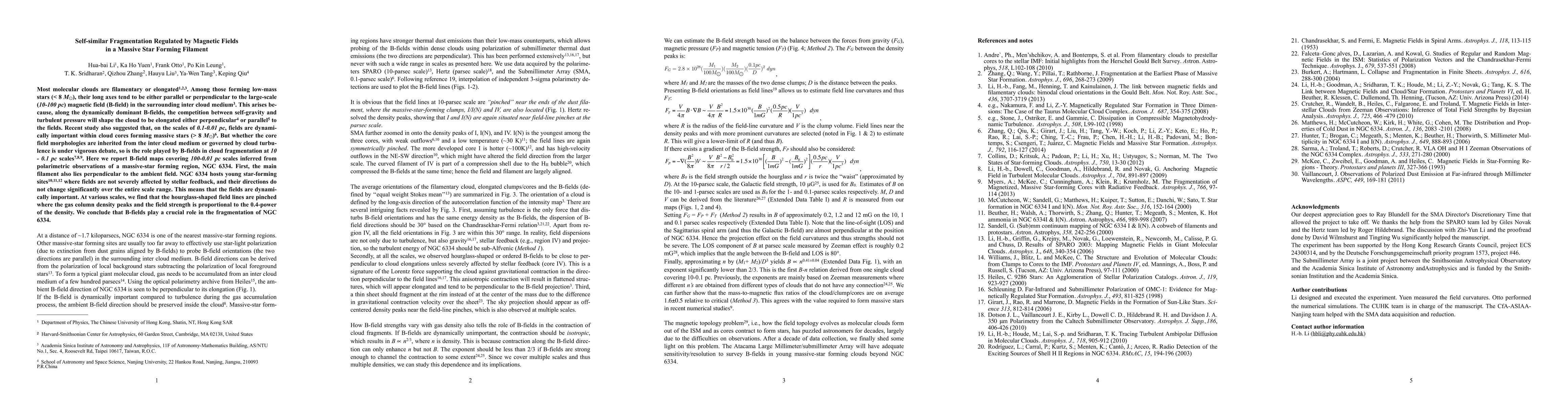 This study investigates the role of magnetic fields in the self-similar fragmentation of a massive star-forming filament in NGC 6334. The findings show that magnetic fields are dynamically important and regulate the fragmentation process, with field strength proportional to the density to the 0.4-power.
