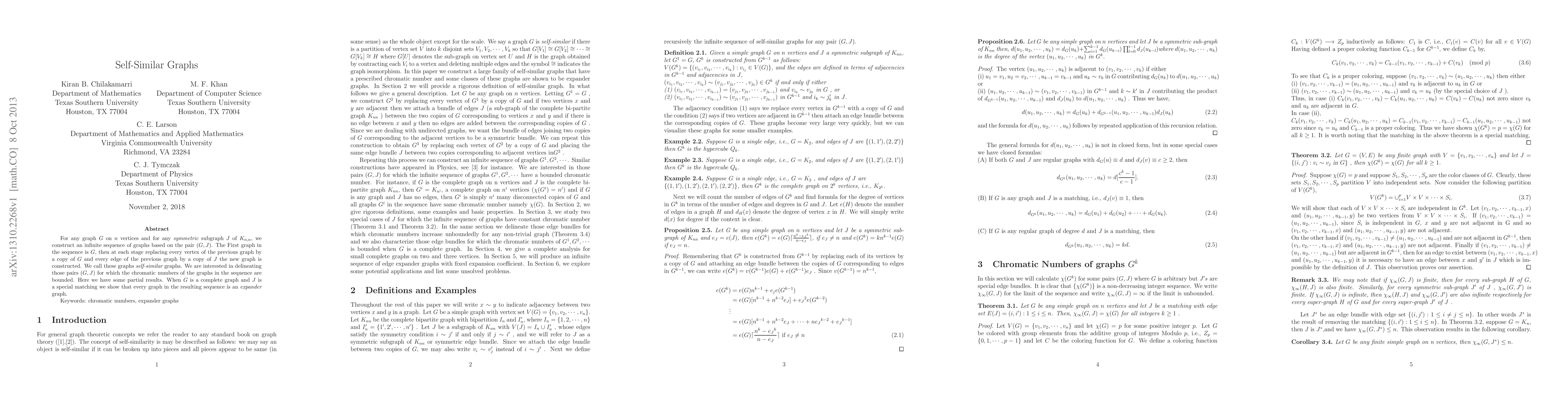 This paper explores self-similar graphs constructed from pairs of symmetric subgraphs in complete bipartite graphs, with a focus on expanding the known results for bounded chromatic numbers.