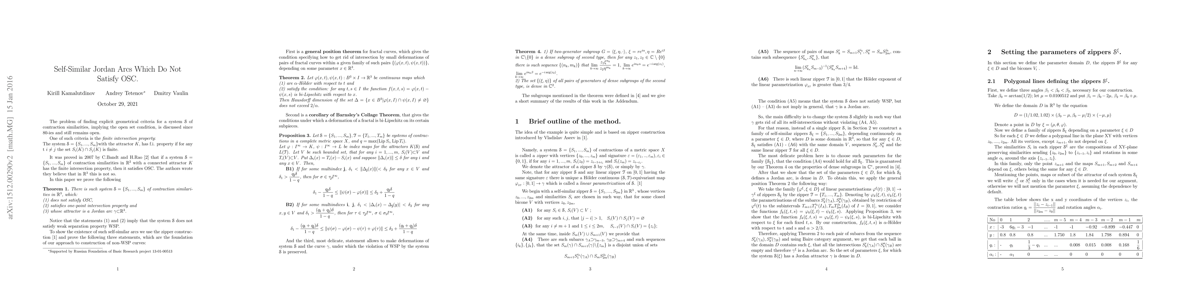 This paper constructs a self-similar Jordan arc in $R^3$ that does not satisfy the Open Set Condition (OSC), despite having a one-point intersection property, contradicting a 2007 result by C. Bandt and H. Rao.