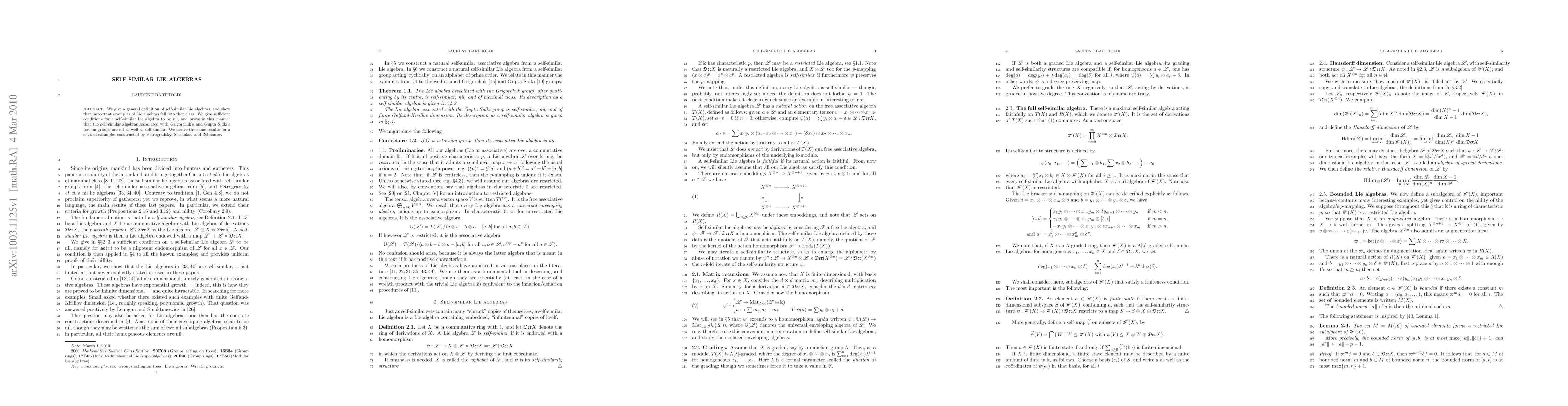 This paper defines self-similar Lie algebras and demonstrates that notable examples, including those linked to Grigorchuk's and Gupta-Sidki's torsion groups, fall within this category. It also establishes sufficient conditions for self-similarity to imply nilpotency.
