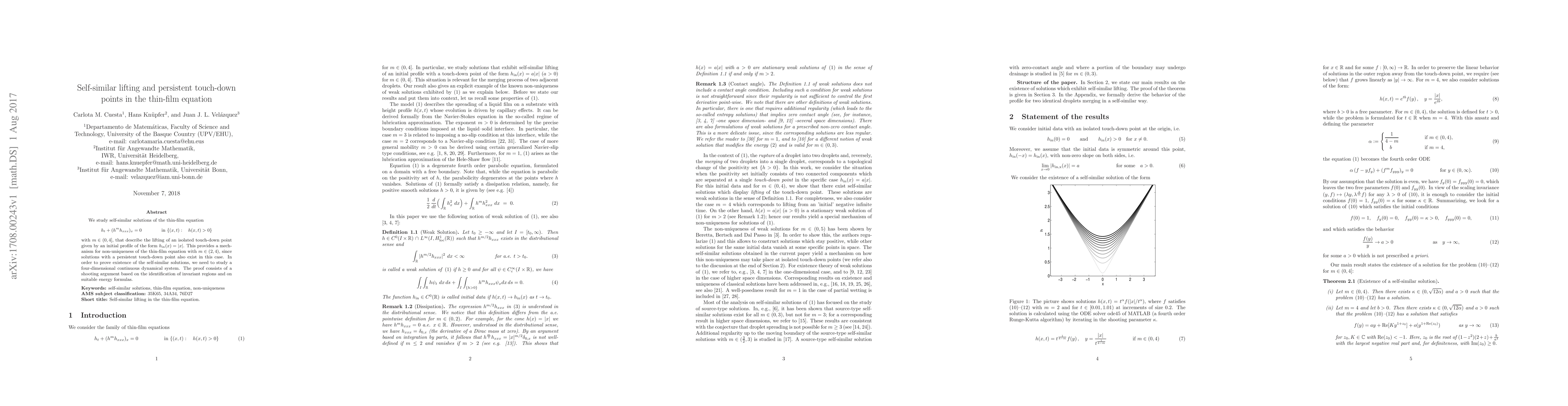 This paper investigates self-similar solutions of the thin-film equation for mobility exponents m in (0,4], demonstrating the existence of persistent touch-down points through a four-dimensional dynamical system. The study reveals non-uniqueness in solutions for m in (2,4) due to the identified self-similar lifting mechanisms.