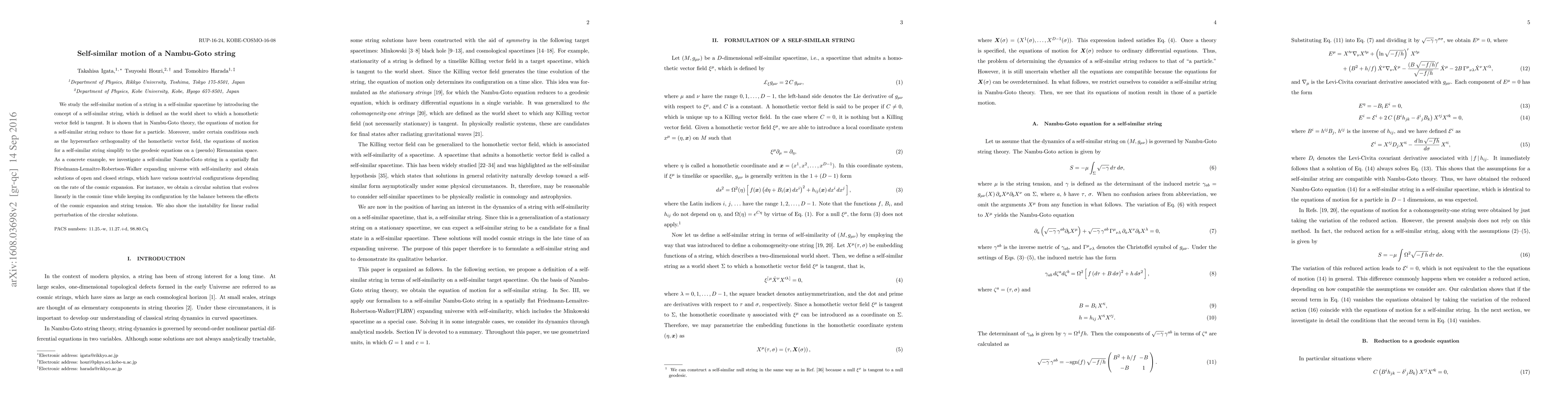 This research explores self-similar motion of Nambu-Goto strings in self-similar spacetimes, demonstrating that their equations of motion simplify to those of particles under specific conditions, and investigates their behavior in an expanding universe, identifying stable and unstable configurations influenced by cosmic expansion and string tension.