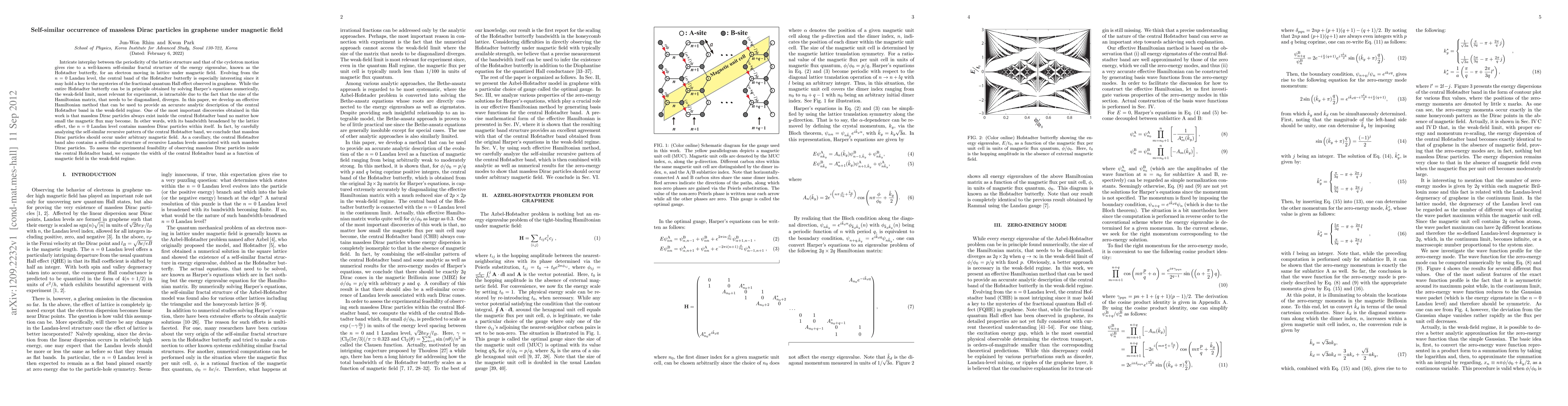 This paper develops an effective Hamiltonian method to analytically describe the central Hofstadter band in graphene under a weak magnetic field, revealing the existence of massless Dirac particles within it regardless of the magnetic flux. The study concludes that these particles are self-similarly embedded in the recursive Landau levels of the central Hofstadter band.
