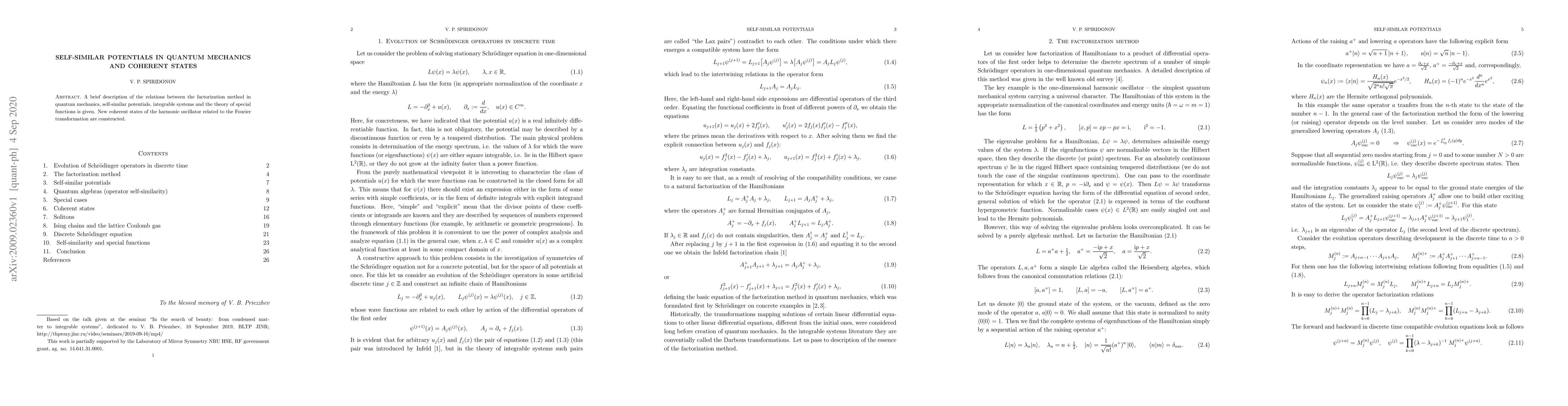 A brief description of the relations between the factorization method in quantum mechanics, self-similar potentials, integrable systems and the theory of special functions is given. New coherent states of the harmonic oscillator related to the Fourier transformation are constructed.