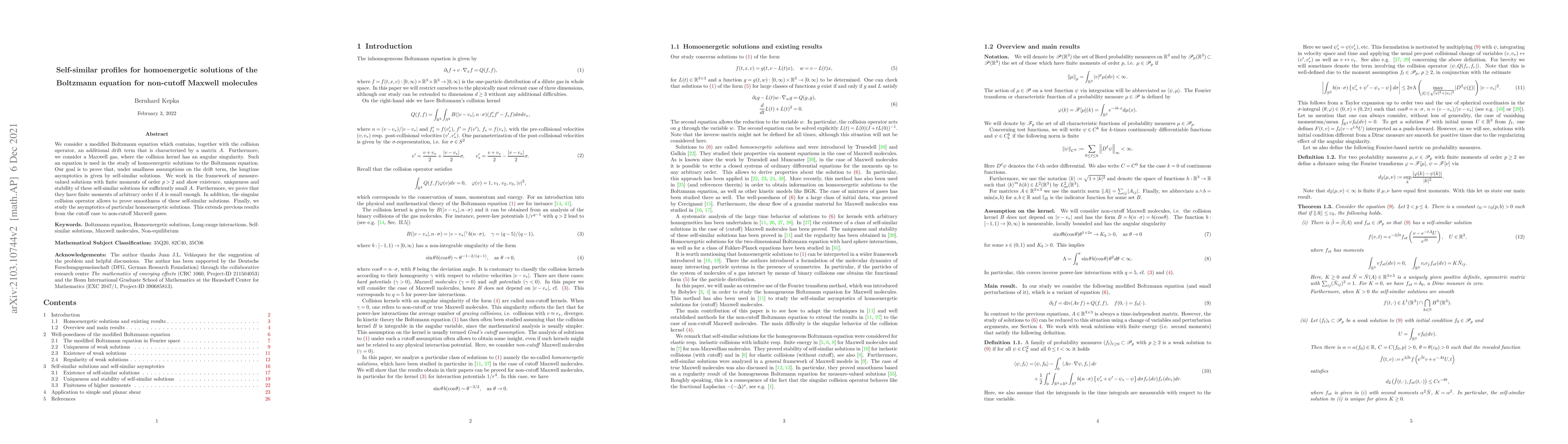 This paper explores a modified Boltzmann equation for non-cutoff Maxwell molecules, proving the existence, uniqueness, and stability of self-similar profiles for homoenergetic solutions under small drift conditions. It extends previous results from cutoff to non-cutoff cases, showing these solutions have finite moments of any order for sufficiently small drift parameters.