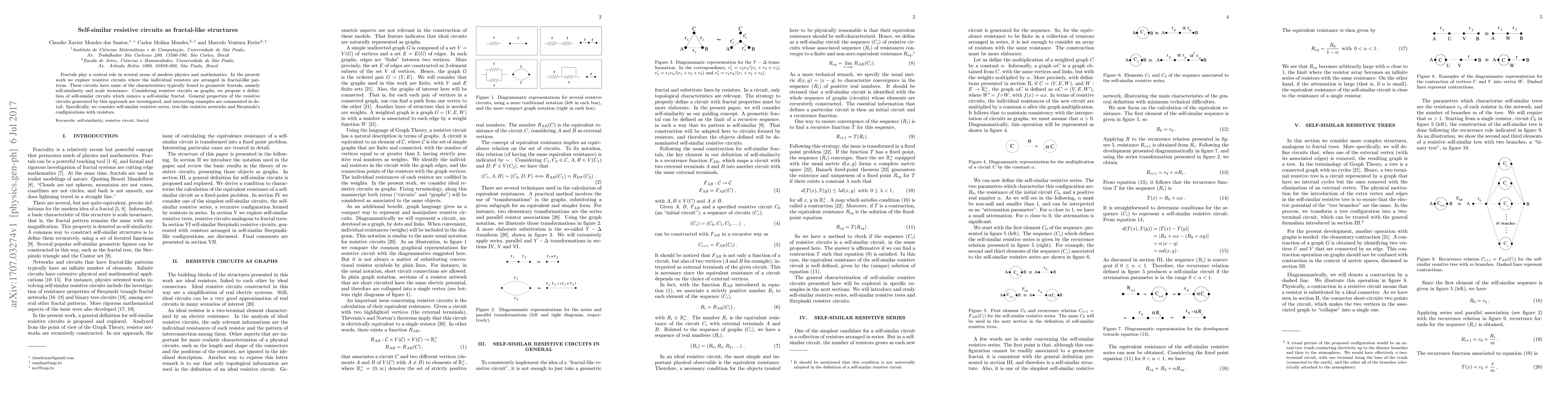 The paper proposes a rigorous definition of self-similar resistive circuits, ensuring their topological nature while incorporating fractal characteristics, and provides methods for calculating their equivalent resistances.