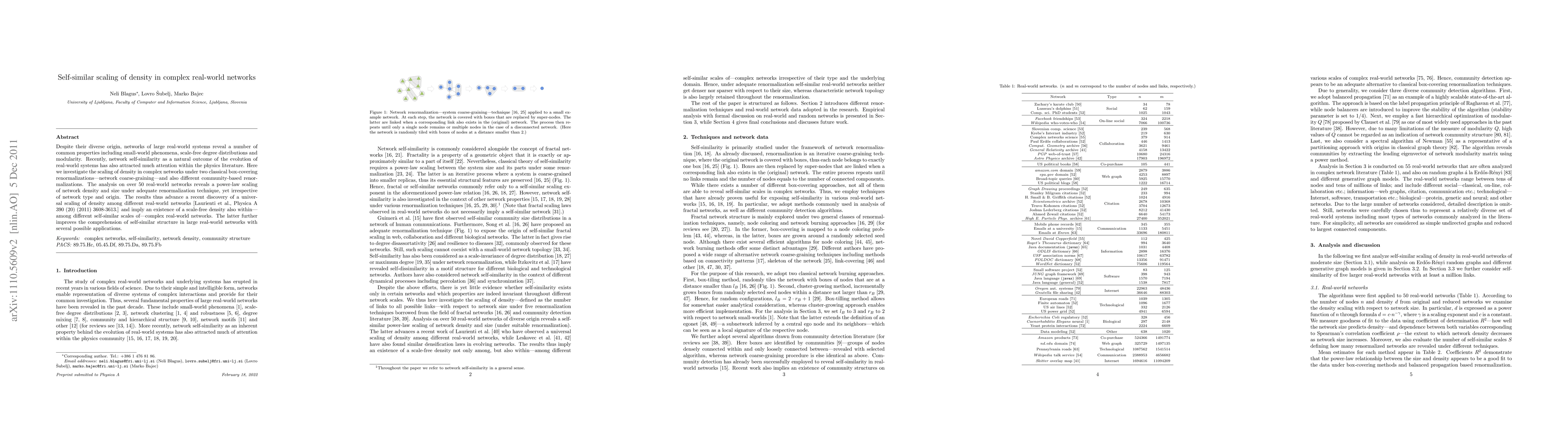 This paper investigates the self-similar scaling of density in complex real-world networks, revealing a universal power-law scaling under various renormalization techniques. The findings suggest a scale-free density across different network types, enhancing the understanding of self-similar structures in large networks.