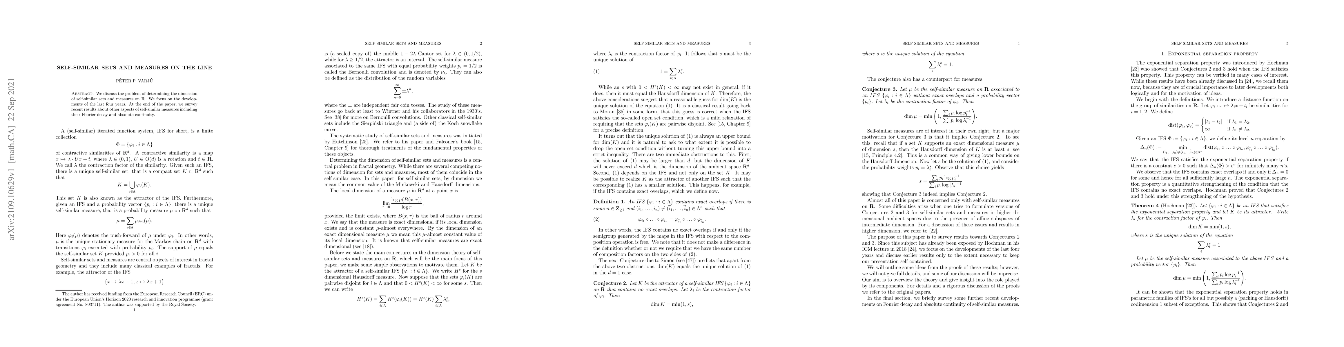 Summary: This paper investigates the dimension of self-similar sets and measures on the real line, highlighting advancements over the past four years and reviewing recent findings on their Fourier decay and absolute continuity properties.