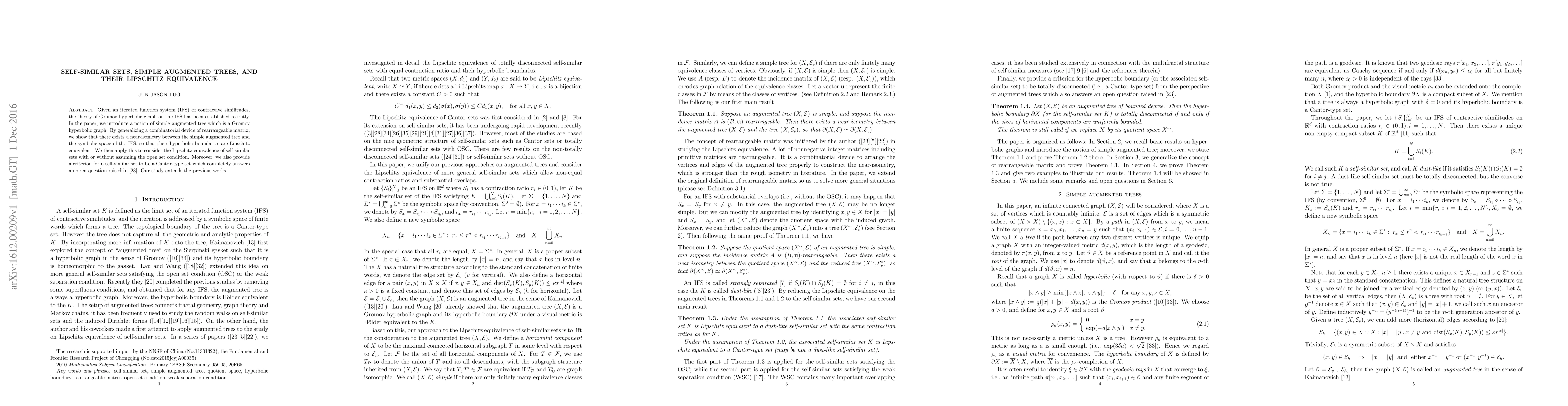 Given an iterated function system (IFS) of contractive similitudes, the theory of Gromov hyperbolic graph on the IFS has been established recently. In the paper, we introduce a notion of simple augmented tree which is a Gromov hyperbolic graph. By generalizing a combinatorial device of rearrangeable matrix, we show that there exists a near-isometry between the simple augmented tree and the symbolic space of the IFS, so that their hyperbolic boundaries are Lipschitz equivalent. We then apply this to consider the Lipschitz equivalence of self-similar sets with or without assuming the open set condition. Moreover, we also provide a criterion for a self-similar set to be a Cantor-type set which completely answers an open question raised in \cite{LaLu13}. Our study extends the previous works.