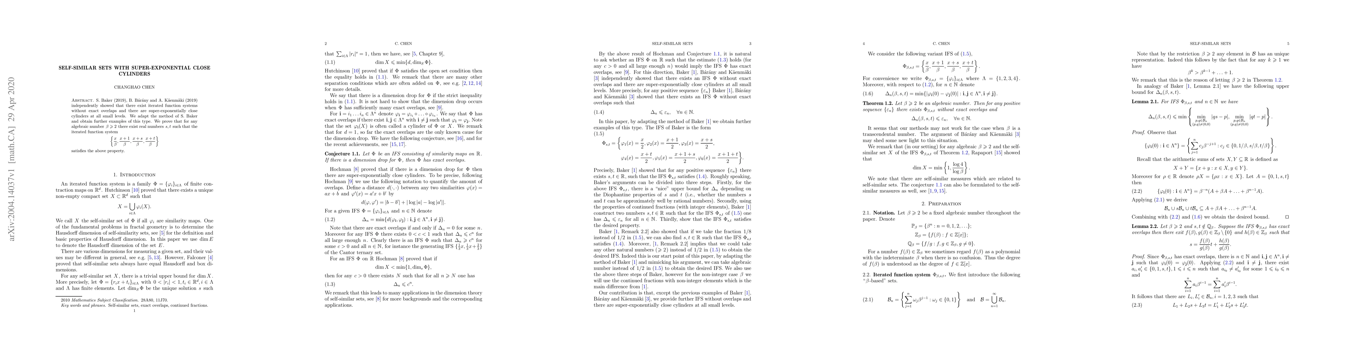 Researchers found that for certain algebraic numbers, specific iterated function systems can produce super-exponentially close cylinders with no exact overlaps, a phenomenon previously demonstrated in other contexts.