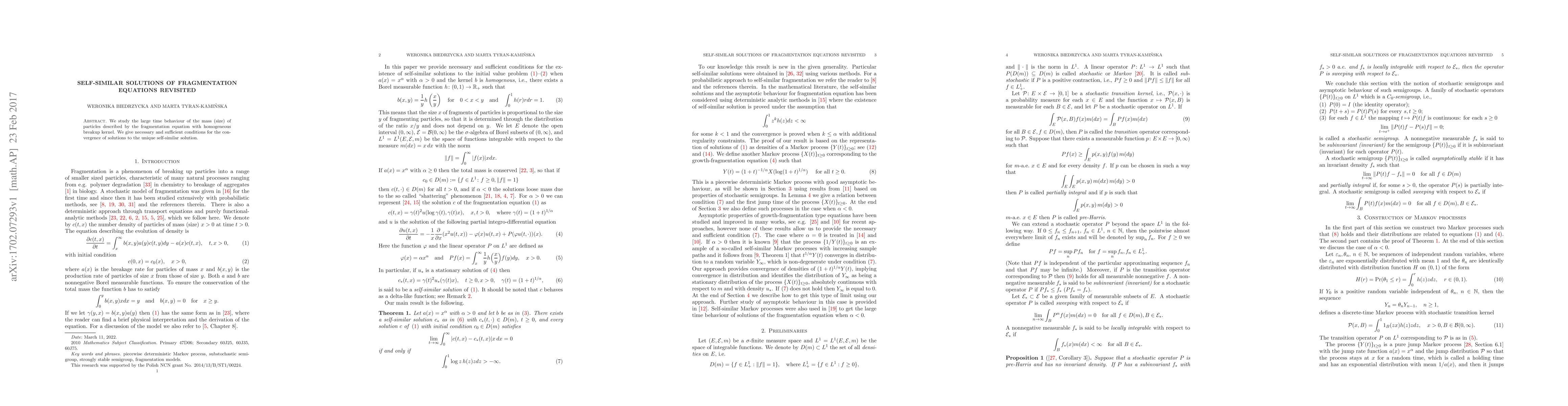 This paper studies the long-term behavior of particles in fragmentation equations, finding necessary conditions for their solutions to converge to a unique self-similar solution.