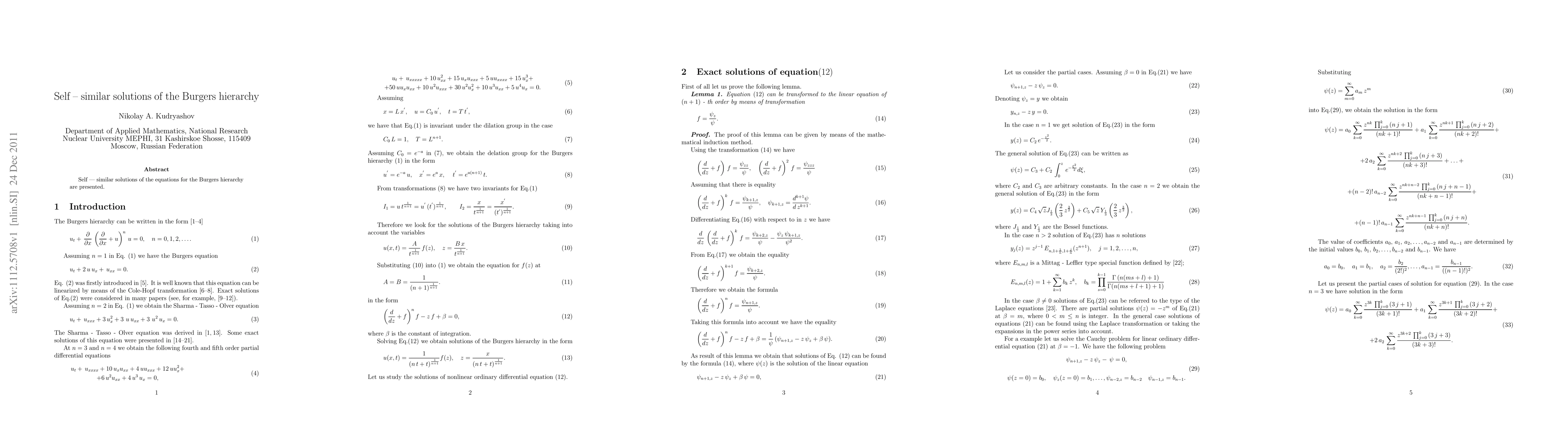 This paper presents self-similar solutions to the equations of the Burgers hierarchy, a mathematical framework for understanding fluid dynamics and chaos theory.